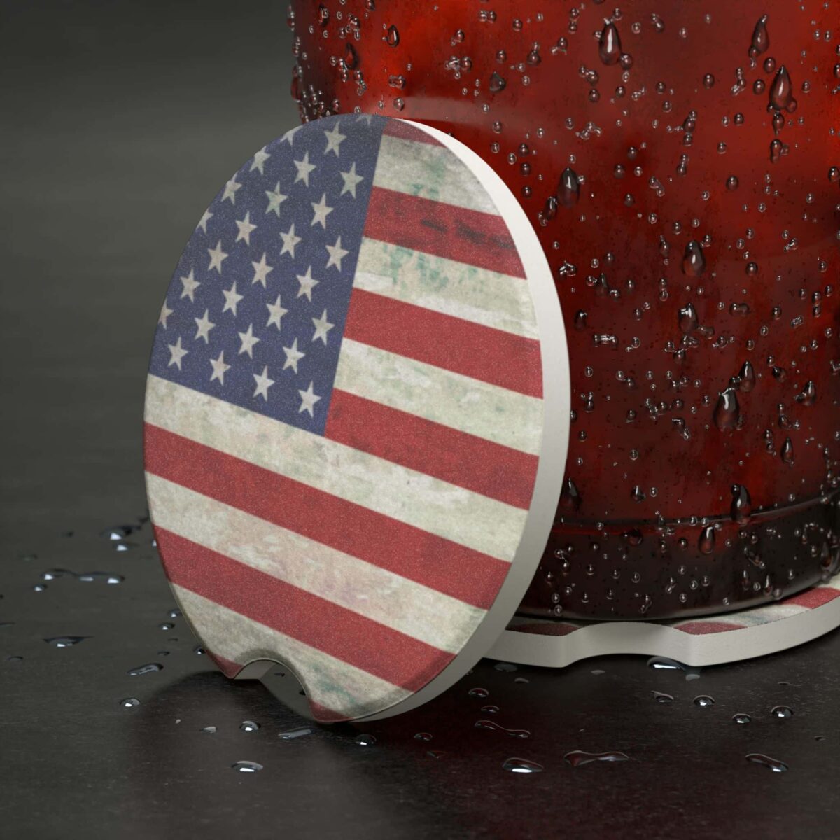American Flag Soapstone Car Coaster – Patriotic Auto Accessory✨