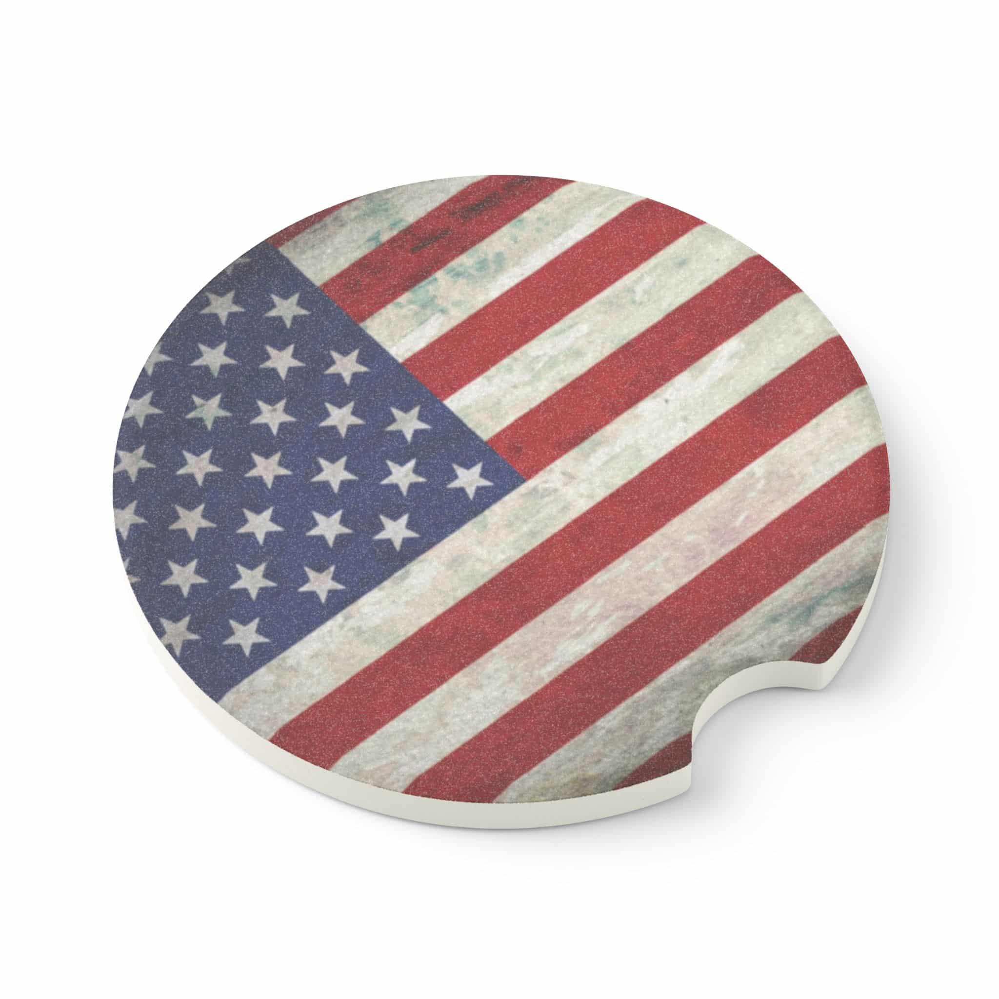 Show your pride and keep your ride clean with this American Flag Soapstone Car Coaster. Designed with a bold patriotic flag graphic, this coaster is both functional and stylish—perfect for road trips, daily driving, or even as small home décor.