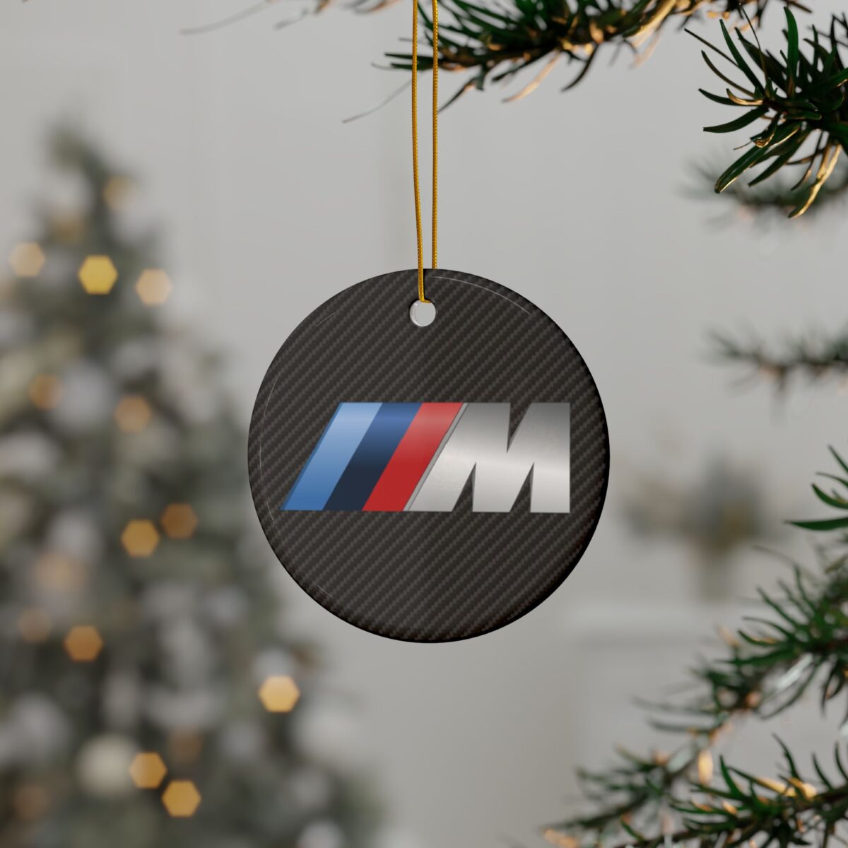 Add high-performance style to your holiday décor with this BMW M Series Carbon Fiber Ceramic Ornament — a sleek, motorsport-inspired design that brings the power of BMW’s iconic M division to your Christmas tree. Featuring the classic M tricolor logo set against a forged carbon fiber-style background, this ornament is the perfect blend of luxury, speed, and festive spirit.