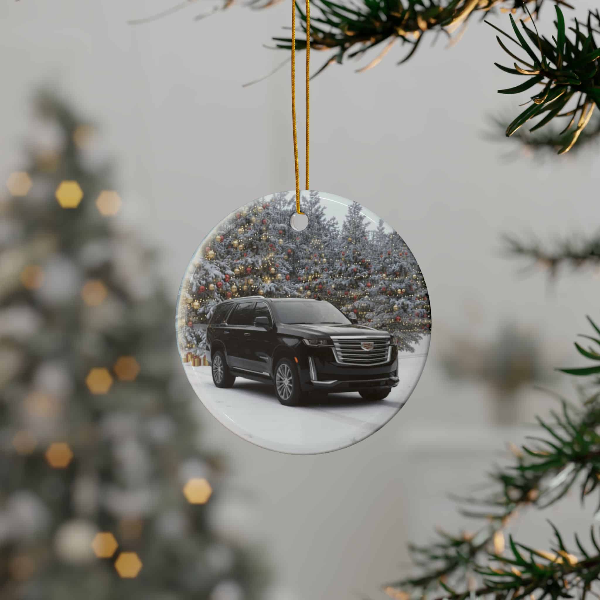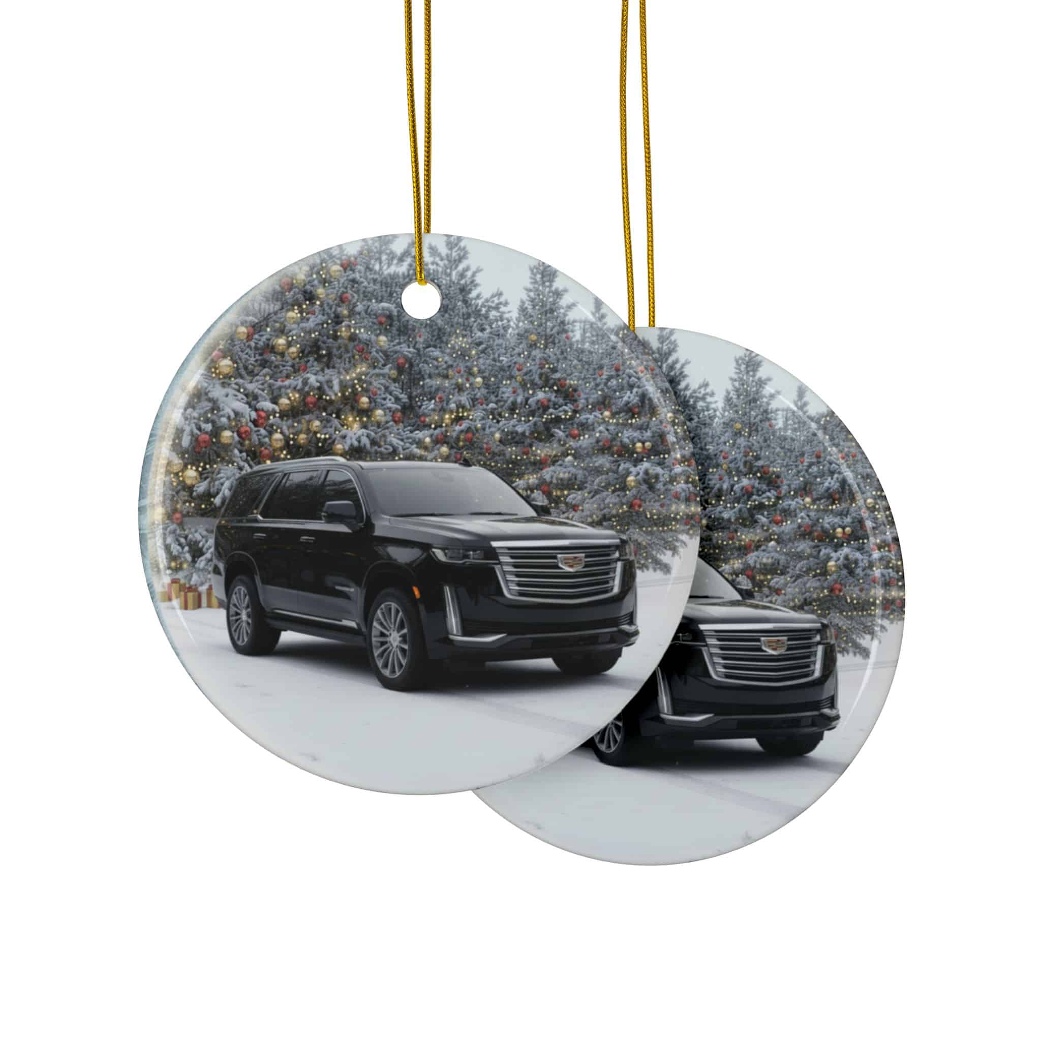 Add luxury and style to your holiday décor with this Cadillac Escalade Ceramic Christmas Ornament. Featuring the bold and elegant design of the Escalade in a festive winter setting, this ornament combines sophistication, comfort, and holiday spirit — perfect for Cadillac enthusiasts and fans of American luxury.