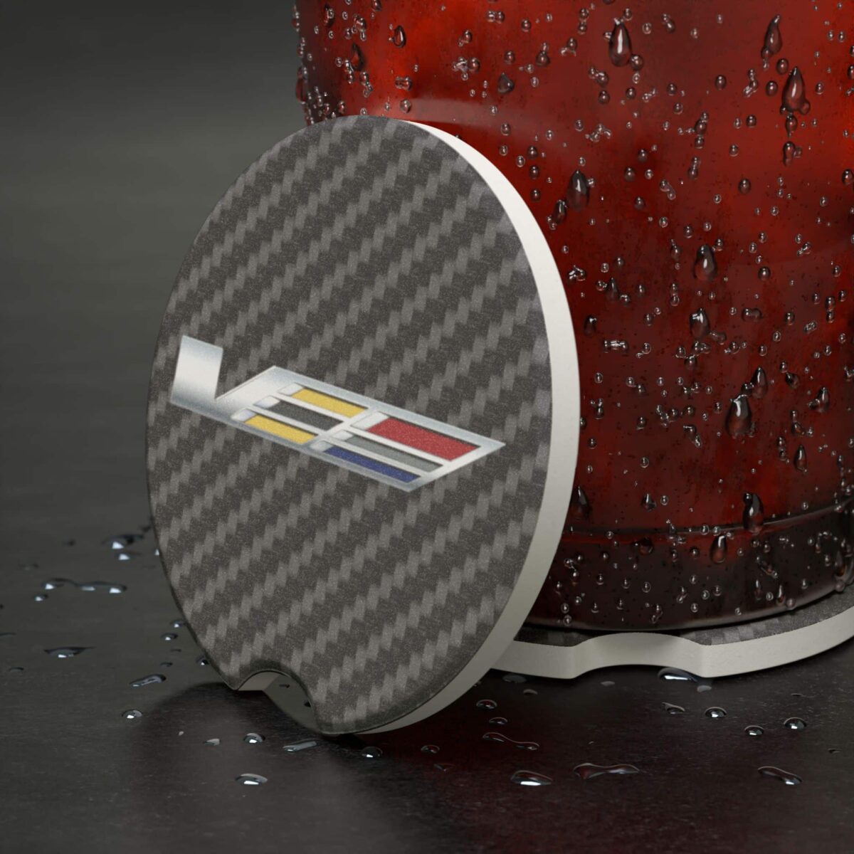 Cadillac V Series Soapstone Car Coaster – Carbon Fiber Design Auto Accessory 🚘🔥