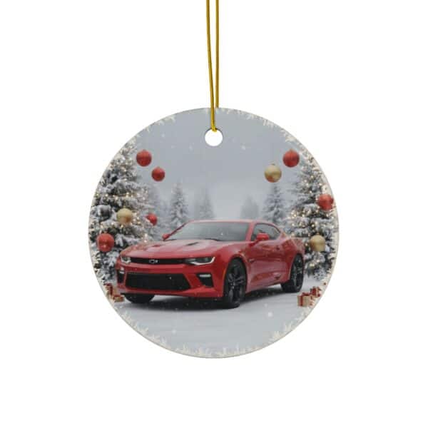 Bring the roar of American muscle to your holiday décor with this Camaro 6th Gen Ceramic Christmas Ornament. Featuring the bold design and aggressive stance of the modern Camaro, this ornament blends performance styling with festive holiday charm — perfect for gearheads and collectors alike.