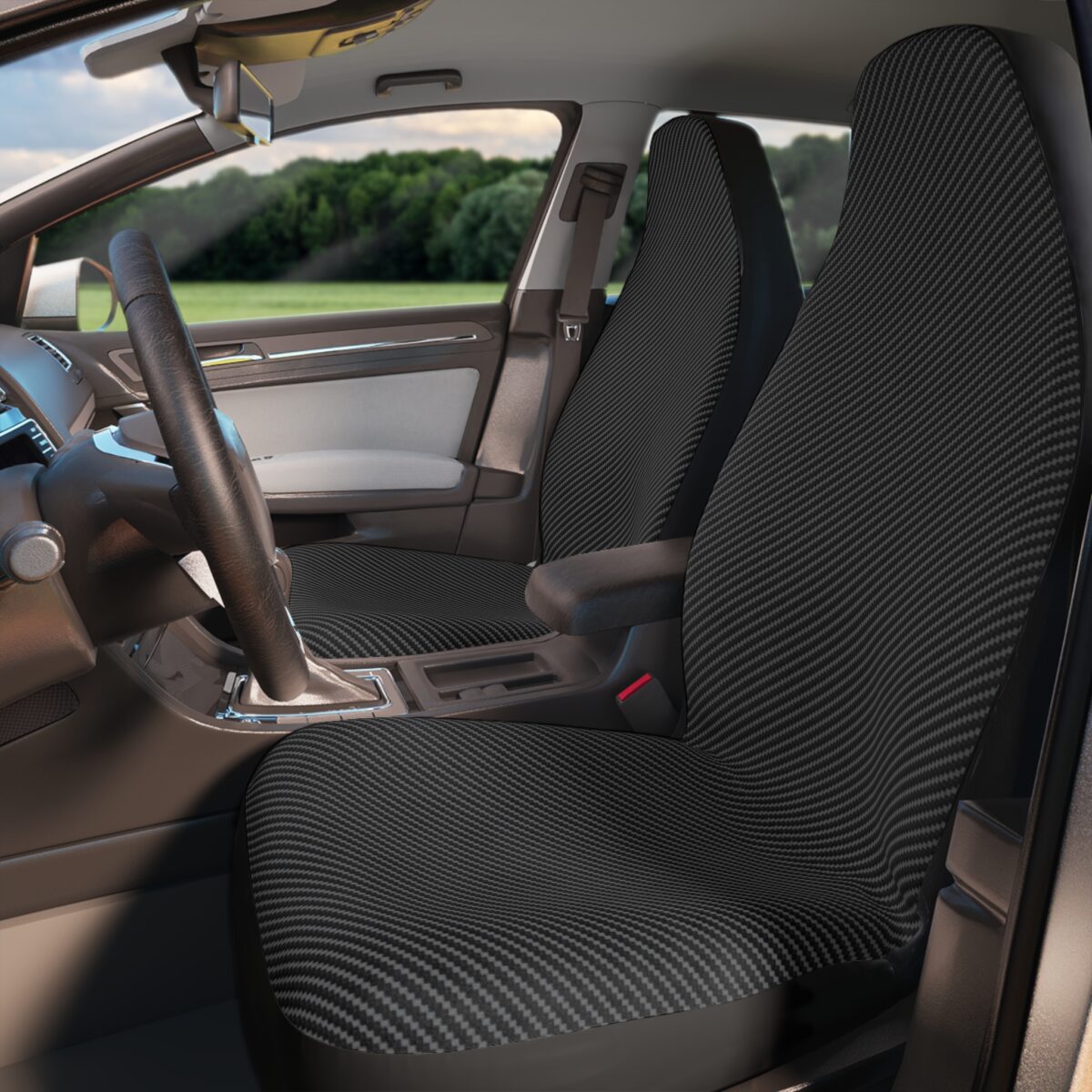Carbon Fiber Black Polyester Car Seat Covers — Universal Protective Front Seat Covers