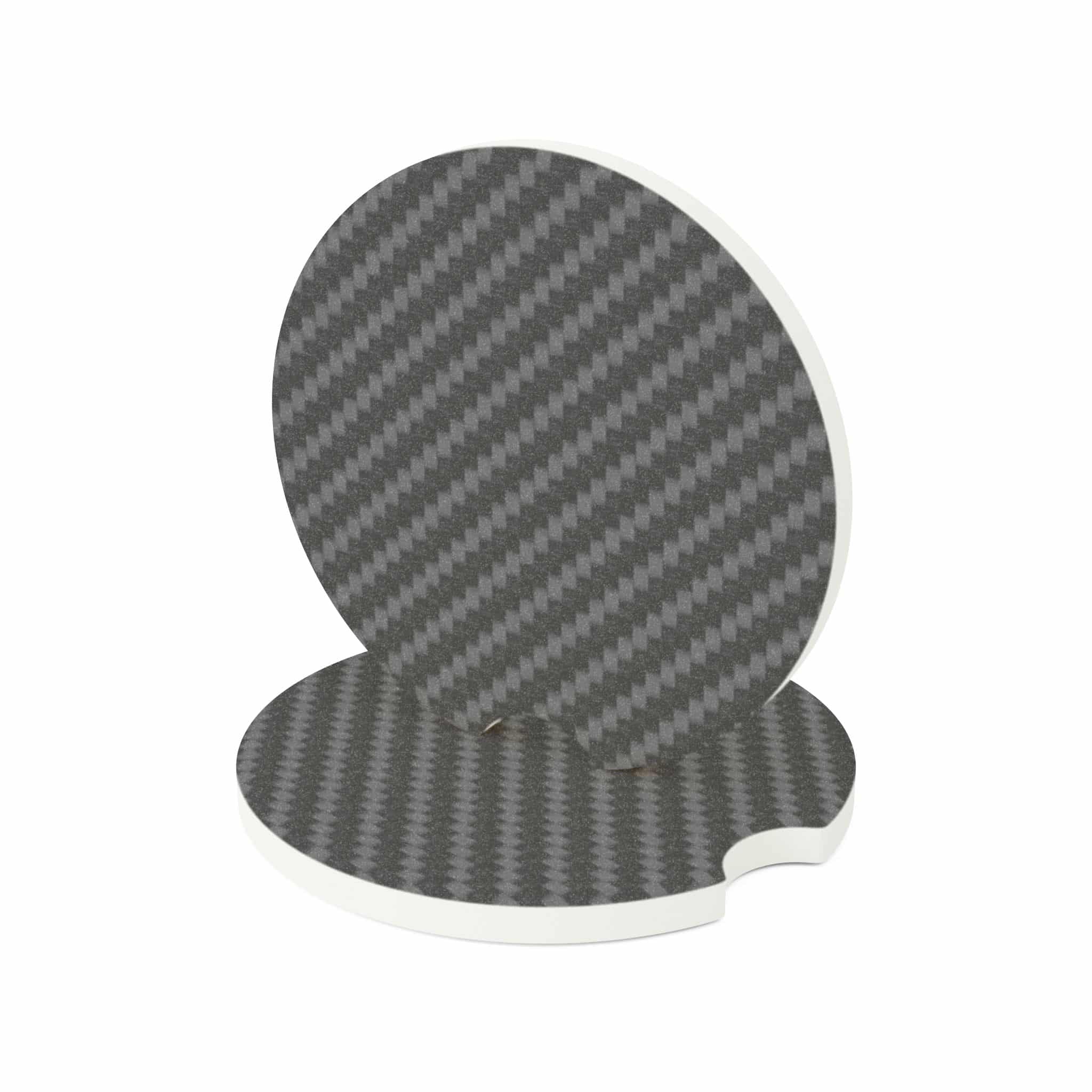 Carbon Fiber Soapstone Coasters for your car cup holders, featuring a sleek design with a matte finish. These coasters absorb condensation to keep your cup holders clean and dry. Perfect for car enthusiasts and those who appreciate a stylish and functional accessory for their vehicle. Great for gifting on birthdays, Father’s Day, or any occasion.