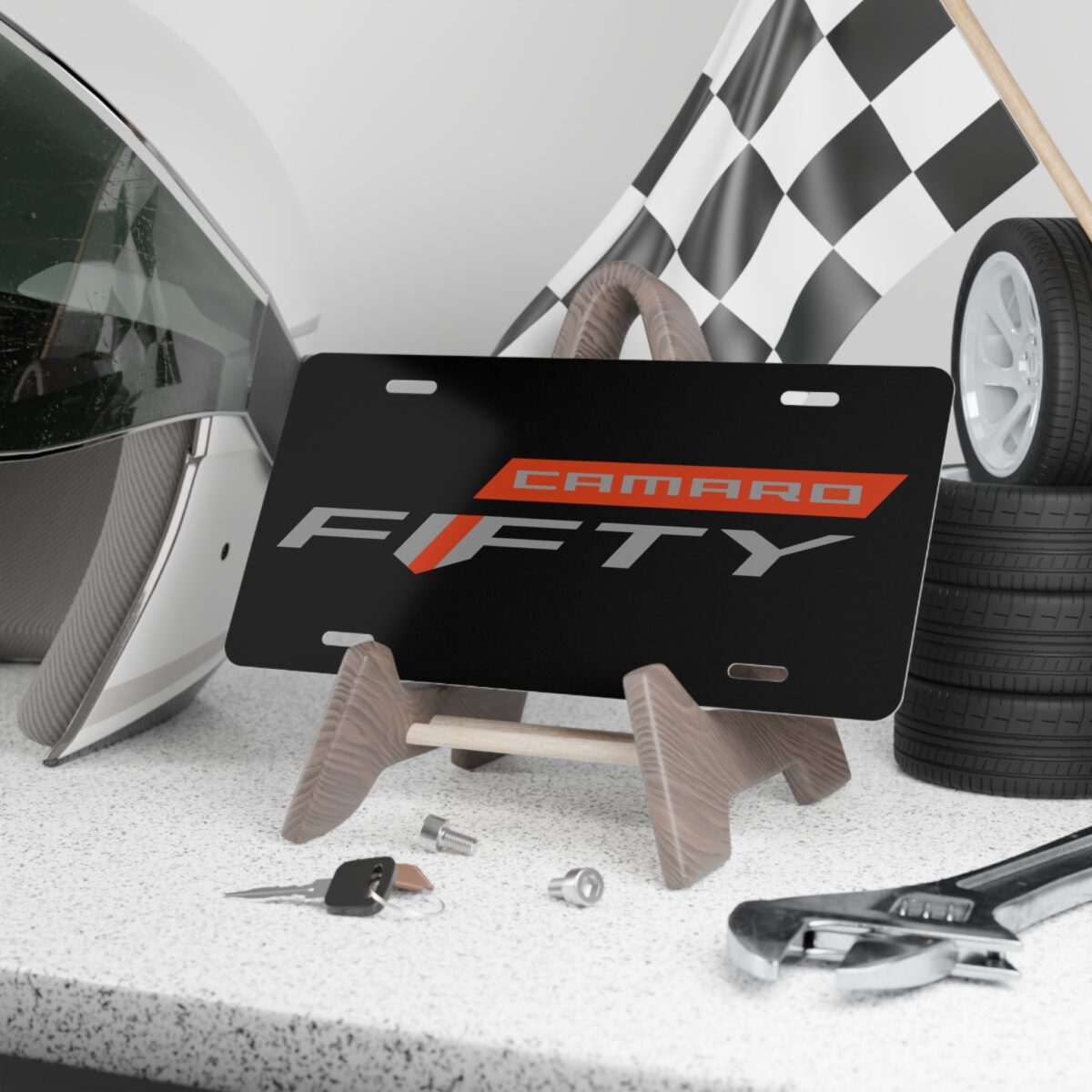 The Camaro Fifty license plate features a bold yet refined design that represents 50 years of speed, style, and muscle car legacy from Chevrolet. It fits standard U.S. license plate mounts and installs easily using existing hardware, making it a simple upgrade with meaningful visual impact.