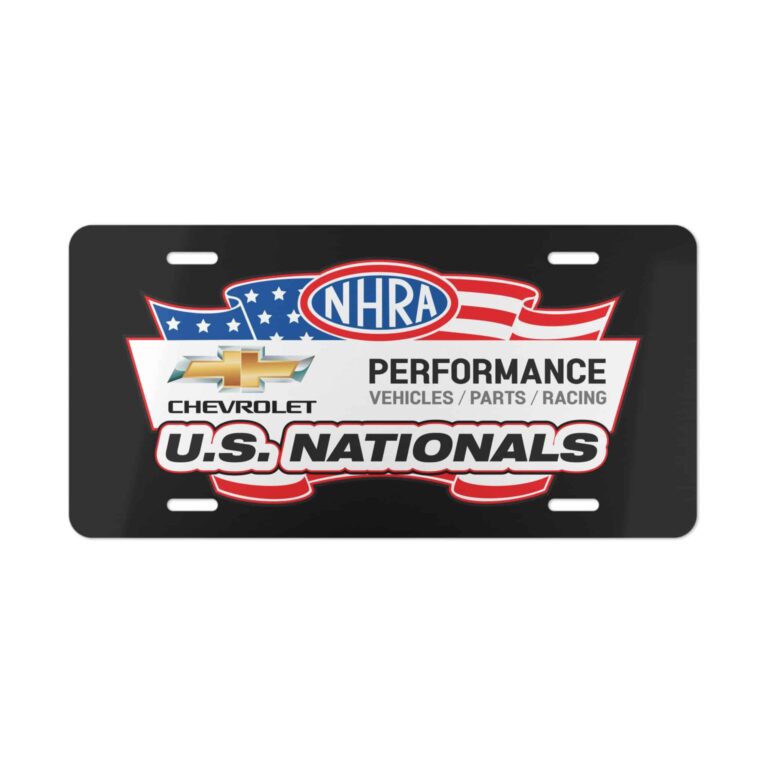 Celebrate the thrill of drag racing with this Chevy Performance NHRA U.S. Nationals License Plate. Featuring bold graphics that highlight Chevy’s presence at the world’s biggest drag race, this plate is perfect for fans of speed, muscle cars, and NHRA heritage. Whether on your vehicle or hanging in your garage, it’s a must-have for Chevy and racing enthusiasts.