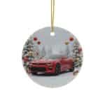 Made from premium ceramic, this round ornament features a double-sided, full-color print with a glossy finish that catches the glow of your Christmas lights. It includes a gold hanging cord for easy display on your tree, in your garage, or anywhere you want to showcase your love for the Corvette legacy.