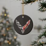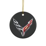 Crafted from premium ceramic, it features a glossy finish with double-sided, full-color printing for a bold, high-definition look. The included gold hanging cord makes it ready to display right out of the box — perfect for Christmas trees, office décor, or collector displays. This C8 Corvette carbon fiber ornament makes the ultimate gift for any car lover or Corvette owner who appreciates style and performance year-round.