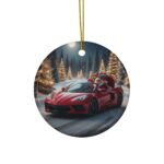 Make your holidays fast and festive with this Corvette C8 Santa Ceramic Christmas Ornament! Featuring Santa behind the wheel of a sleek red C8 Corvette, this ornament combines the thrill of American supercar performance with Christmas magic — perfect for car enthusiasts, Corvette owners, and collectors alike.