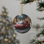 Crafted from premium ceramic, this round ornament features a double-sided, full-color print with stunning detail and a glossy finish that gleams under your Christmas lights. It includes a gold hanging cord for easy display on your tree, in your garage, or anywhere you want to show off your holiday horsepower.