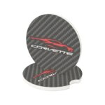 Keep your cup holders clean while showing off your Corvette C8 pride with this Soapstone Car Coaster. Featuring the sleek C8 silhouette graphic over a bold carbon fiber background, this accessory blends function with supercar style—perfect for Corvette enthusiasts.