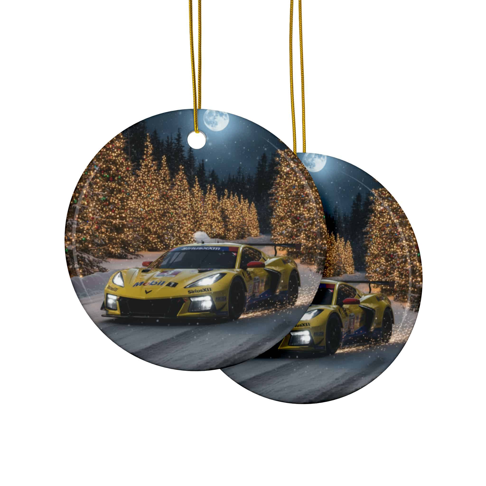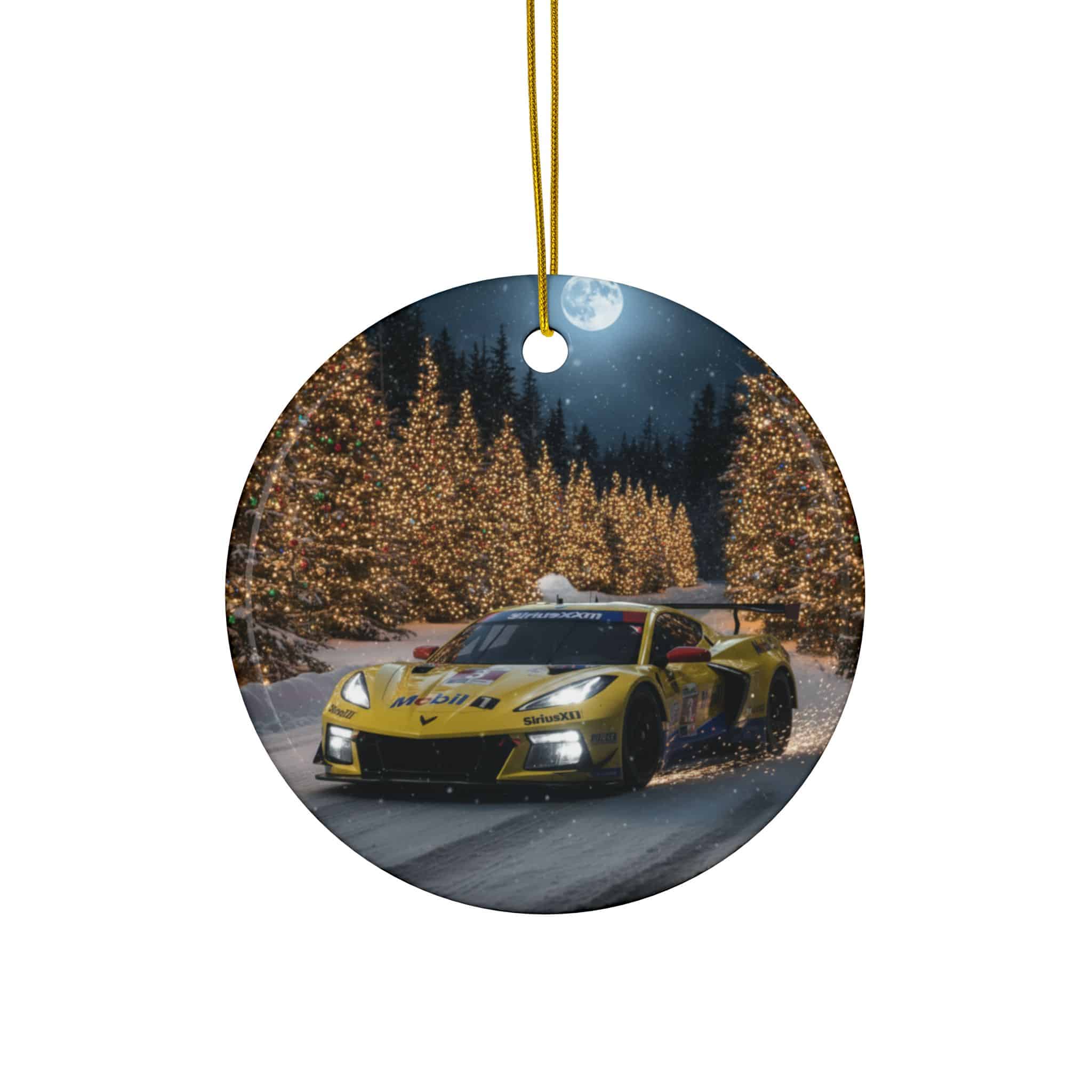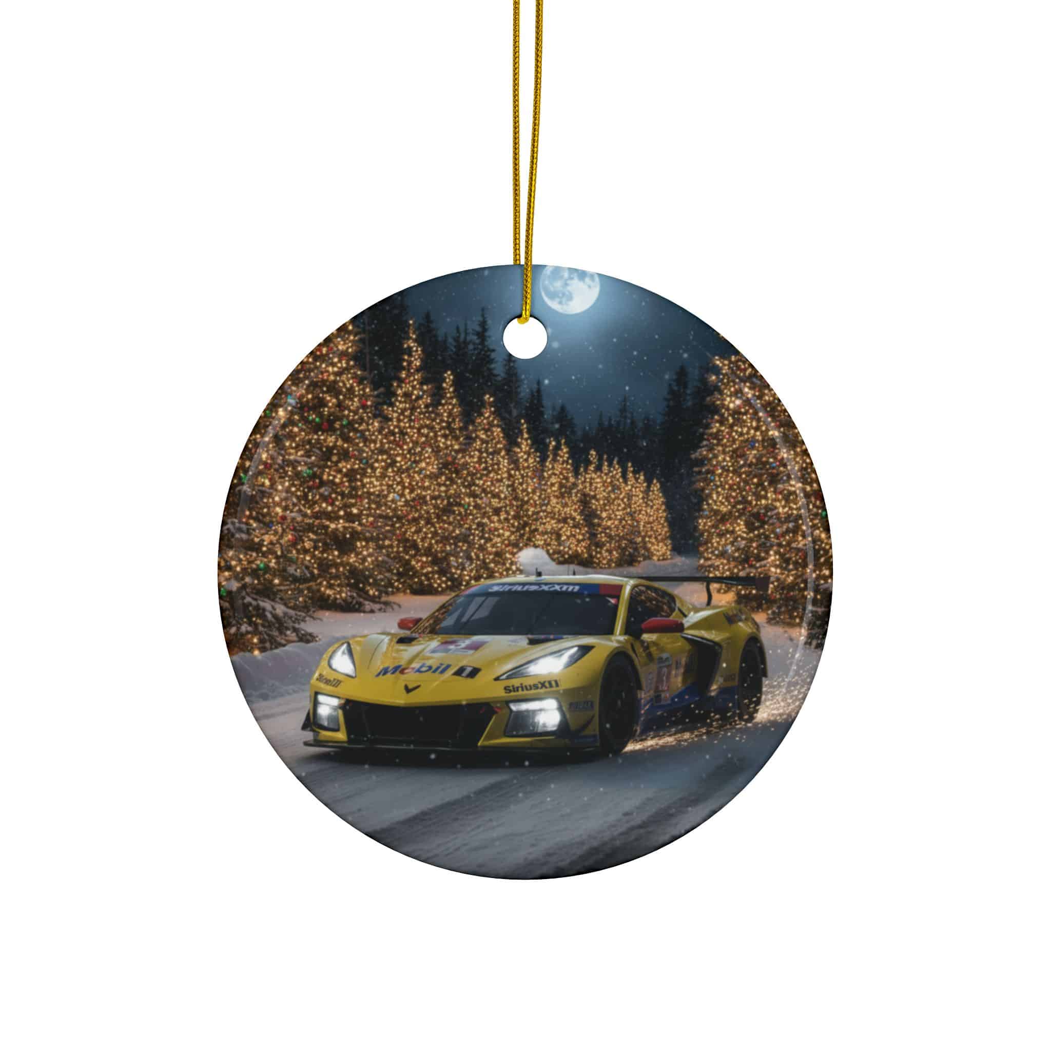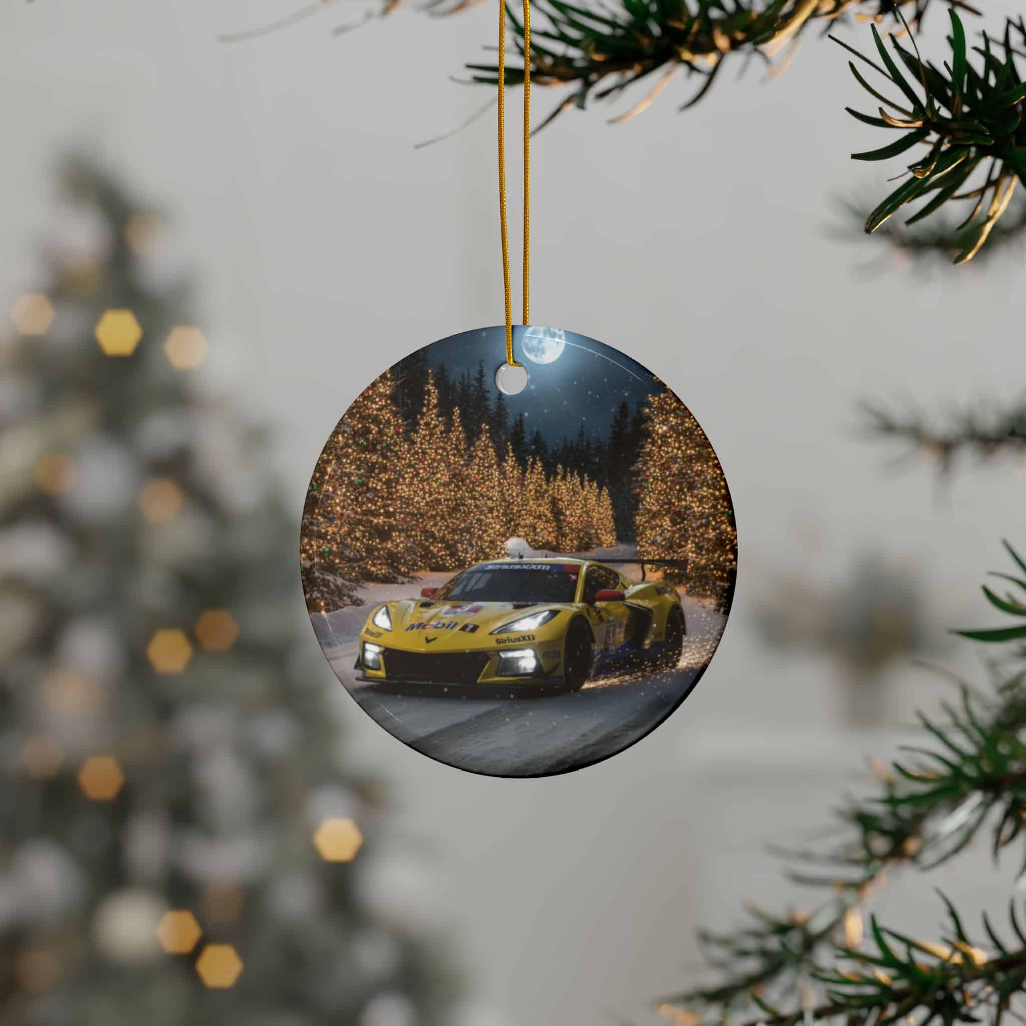 Bring race-winning energy to your holiday décor with this Corvette C8.R Ceramic Christmas Ornament. Featuring the legendary C8.R endurance race car in a festive winter scene, this ornament blends championship performance with holiday spirit — perfect for Corvette fans, collectors, and racing enthusiasts alike.