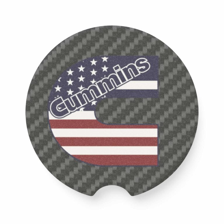 Show off your Cummins diesel pride and American spirit with this premium Soapstone Car Coaster. Featuring the bold Cummins logo paired with an American flag design over a sleek carbon fiber background, this accessory keeps your cup holders clean while making a patriotic statement.