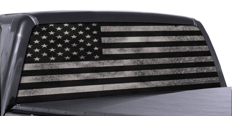 Distressed Black White American Flag Universal Truck Perforated Graphic