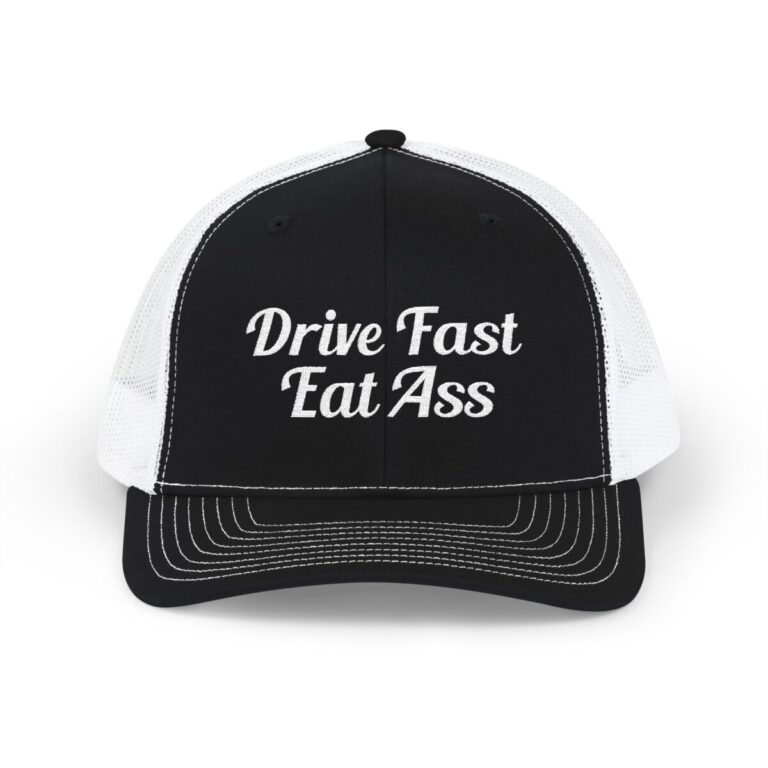 Finished with the bold “Drive Fast Eat Ass” slogan, this cap isn’t for everyone—and that’s the point. Perfect for those who appreciate speed, humor, and not taking things too seriously.