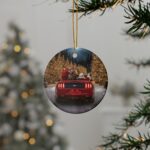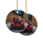 Crafted from premium ceramic, this round ornament features a double-sided, full-color print with vivid detail and a high-gloss finish that sparkles under your Christmas lights. It includes a gold hanging cord for easy display on your Christmas tree, in your garage, or even from your rearview mirror.