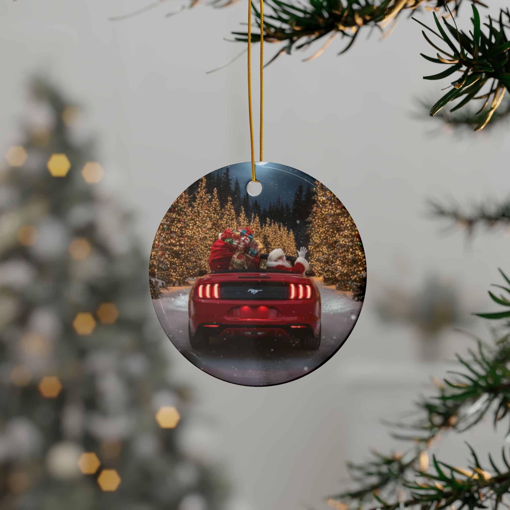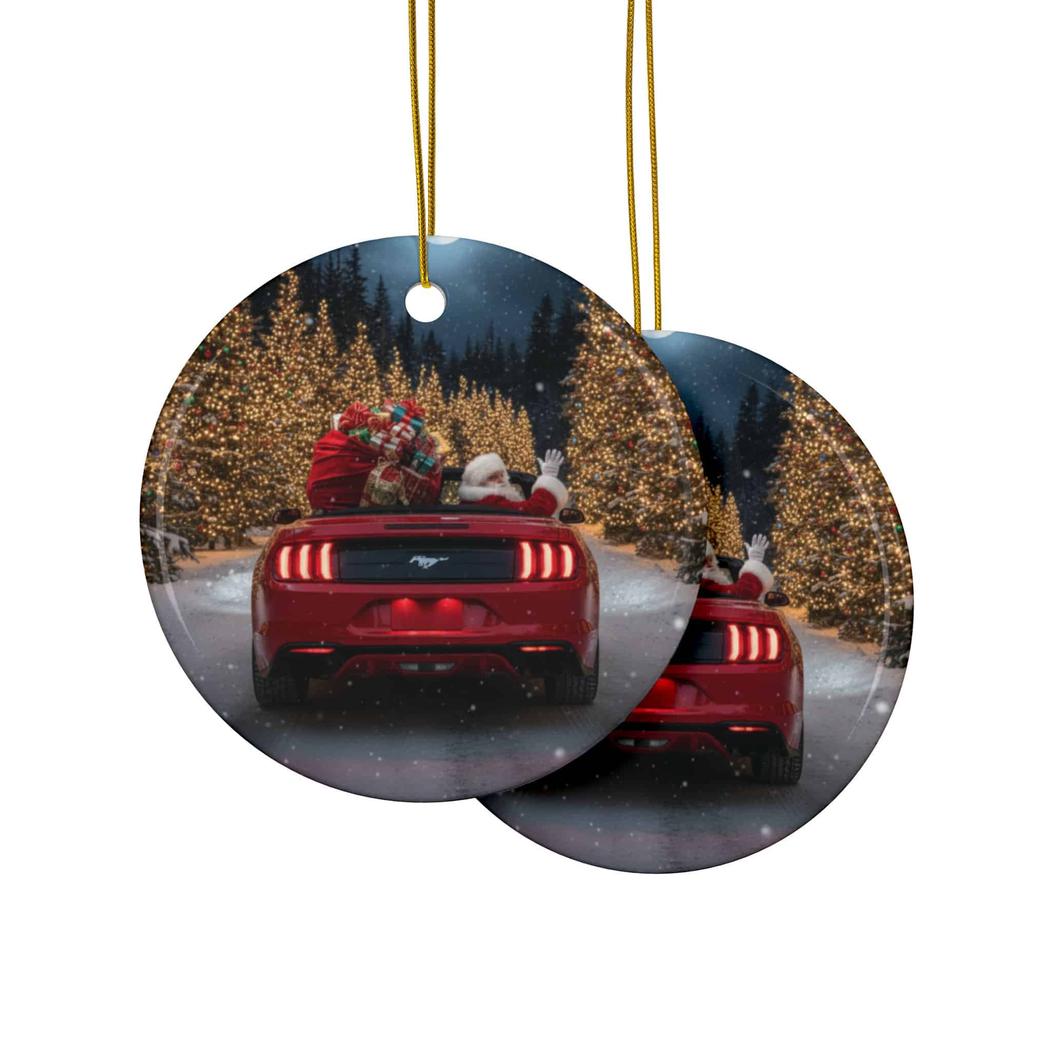 Make your holidays merry and loud with this Ford Mustang Santa Ceramic Christmas Ornament! Featuring Santa behind the wheel of a classic red Ford Mustang cruising through a snowy Christmas scene, this ornament blends horsepower, nostalgia, and festive spirit — perfect for Mustang lovers and collectors alike.