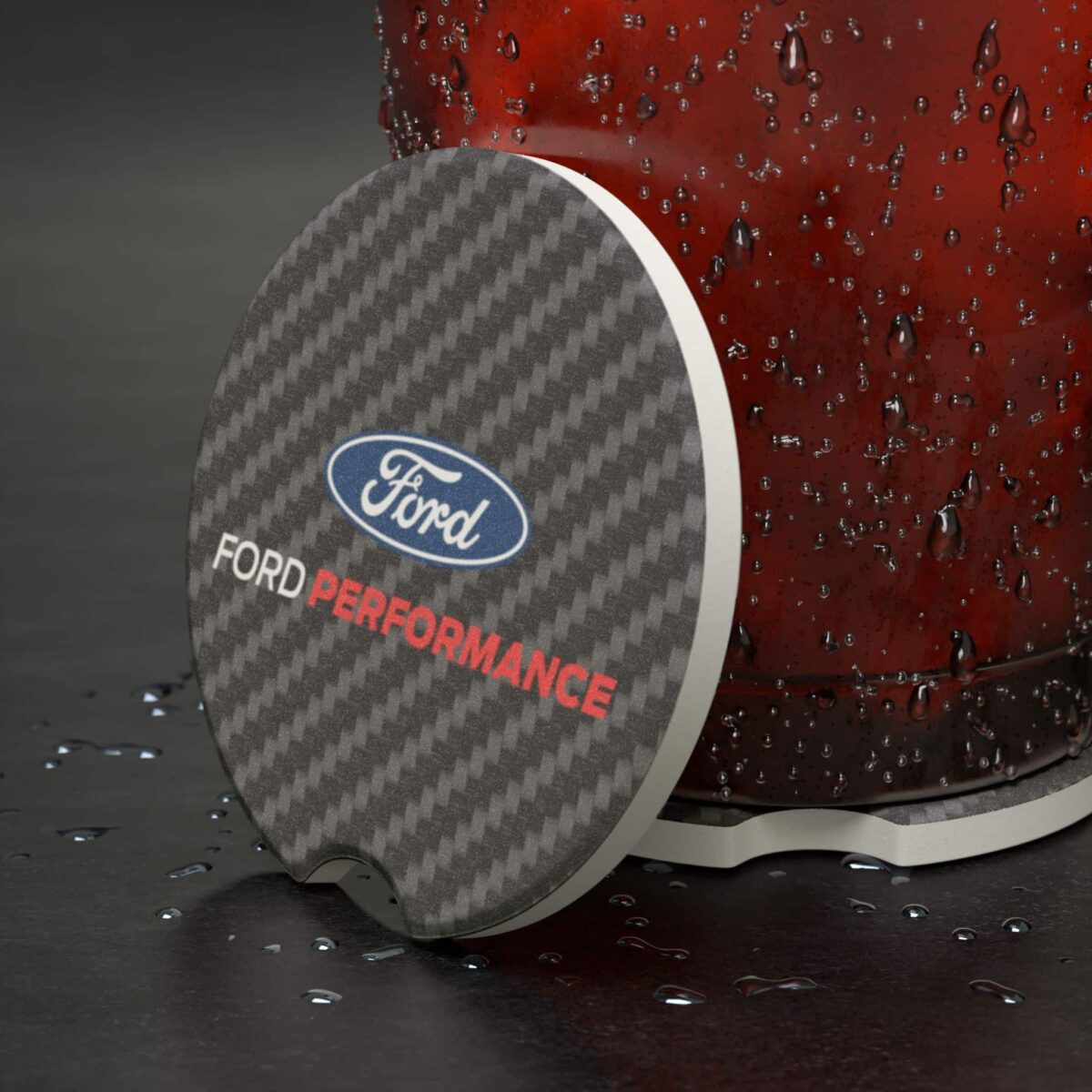 Keep your cup holders spotless while repping your Ford Performance pride with this premium Soapstone Car Coaster. Designed with a sleek carbon fiber background and bold Ford Performance logo, this coaster adds a custom touch to your interior while protecting against condensation.
