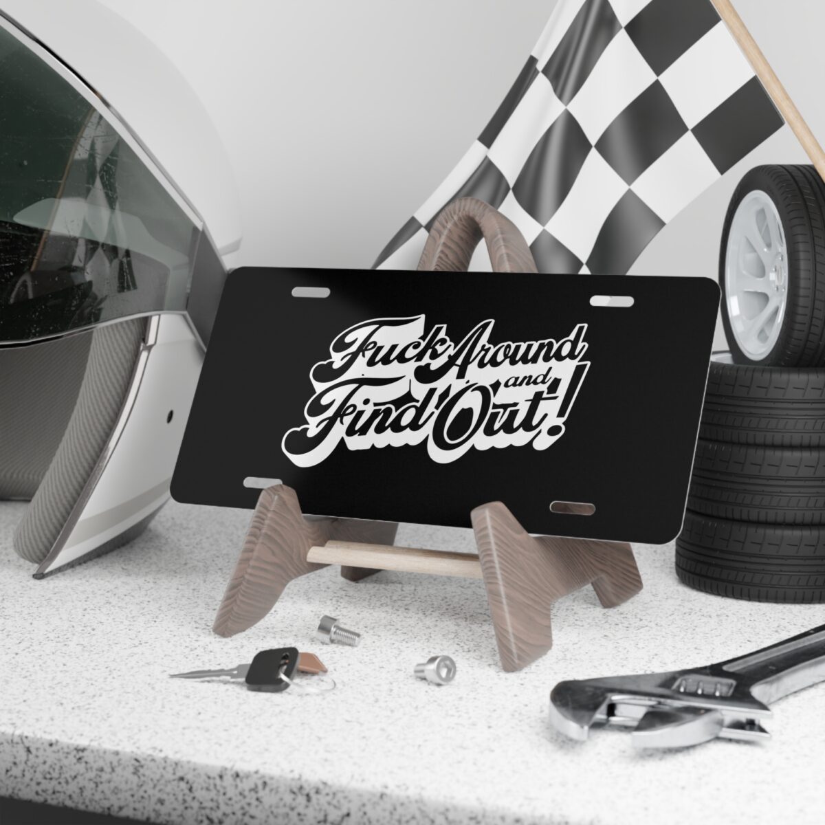 Direct. Unfiltered. Crystal clear. The Fuck Around and Find Out License Plate is for those who don’t sugarcoat anything and don’t owe explanations. Whether it’s mounted on your vehicle or displayed in the garage, this plate makes your stance known instantly.
