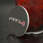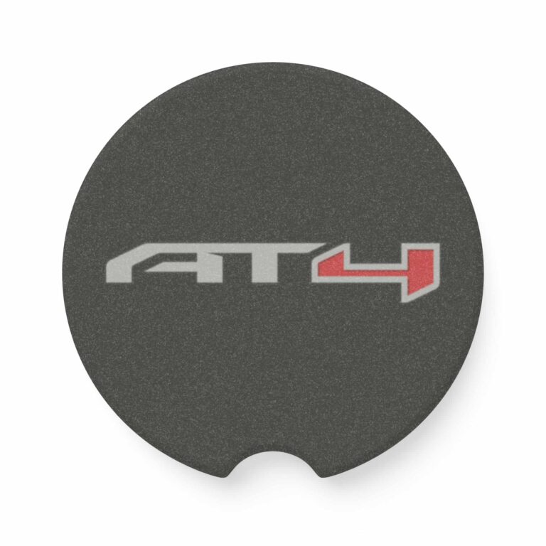 Add rugged style to your ride with this GMC AT4 Soapstone Car Coaster. Featuring the bold AT4 logo over a sleek carbon fiber background, this coaster keeps your cup holders clean while adding a touch of off-road personality to your truck’s interior.
