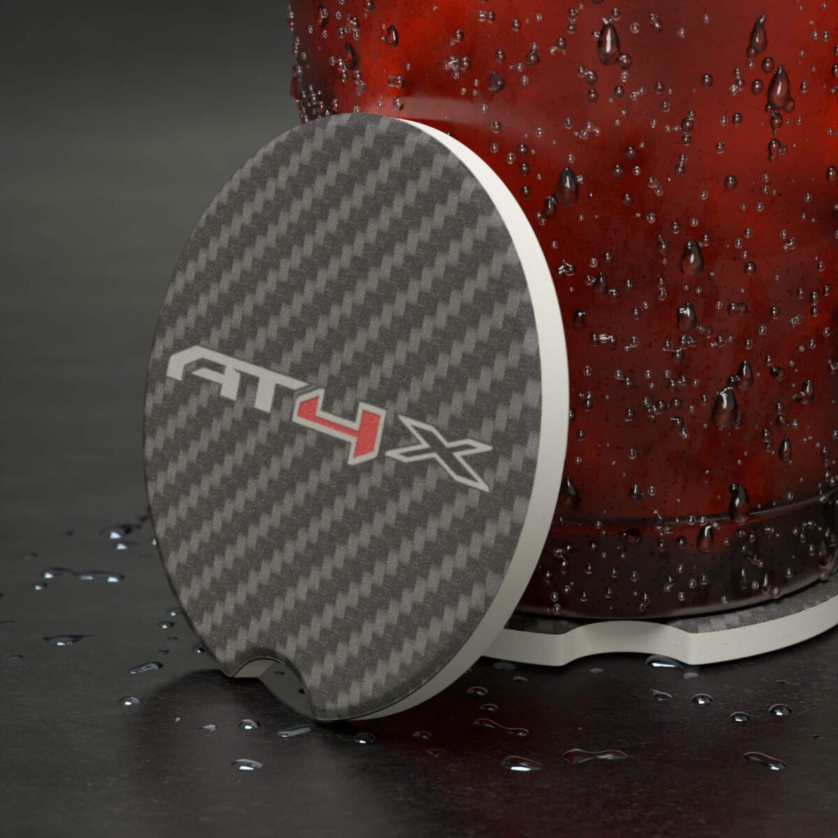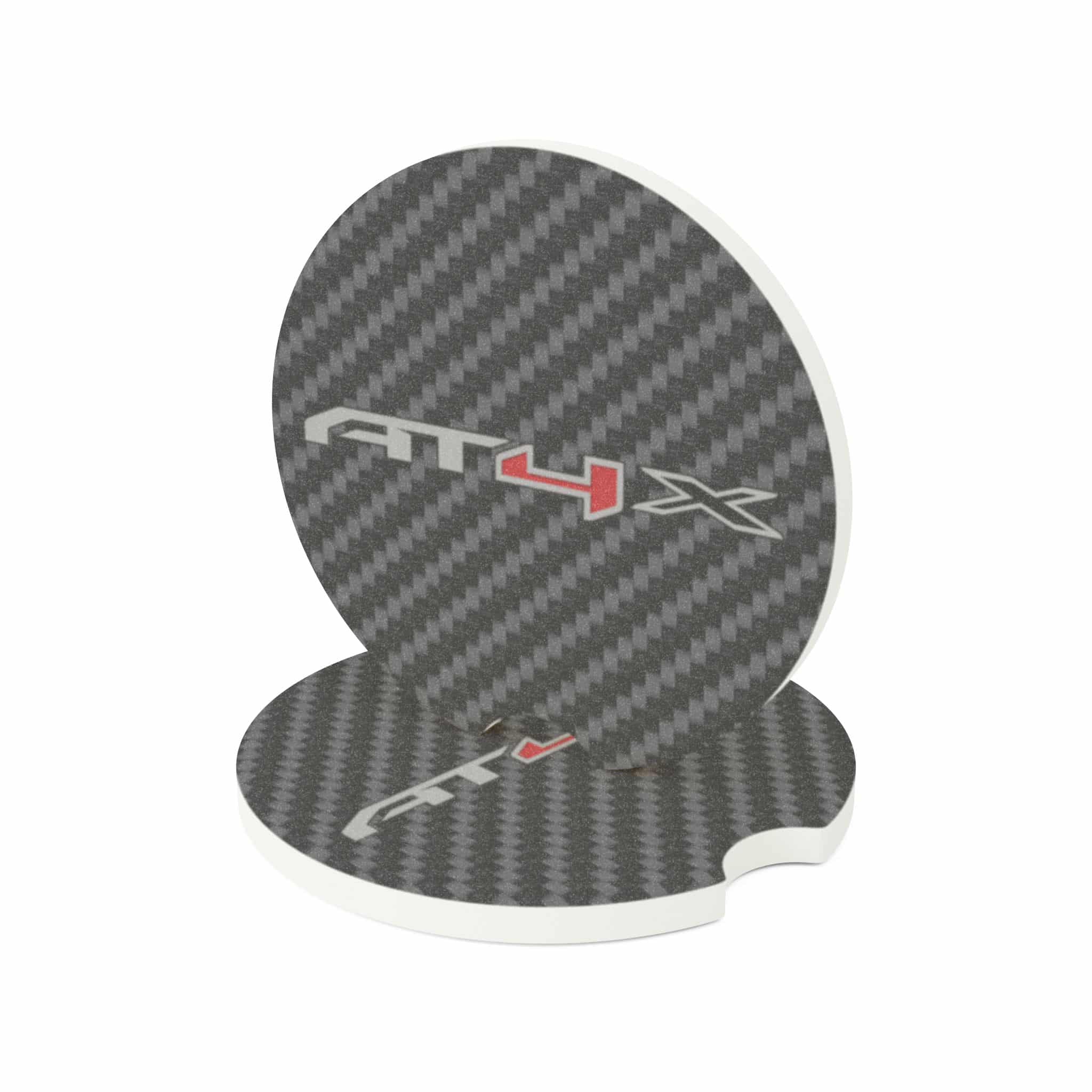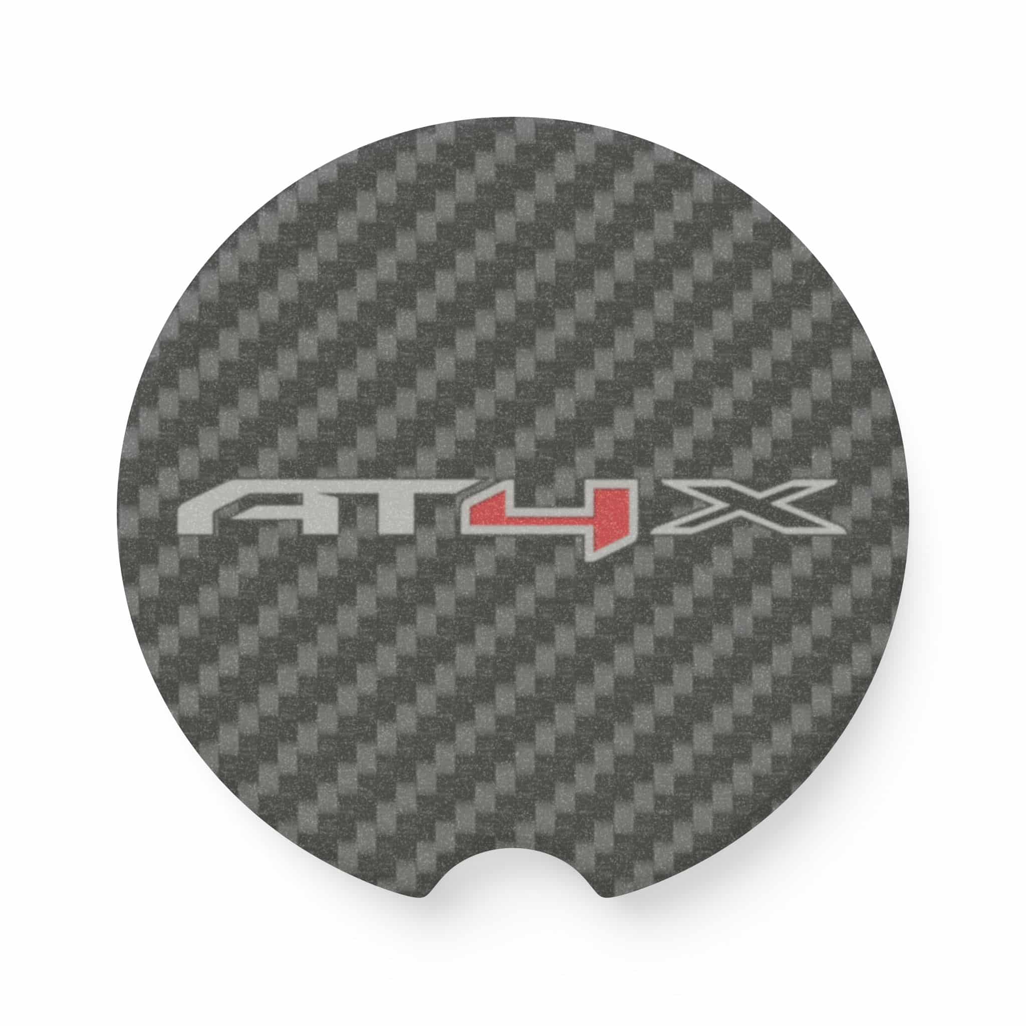 Bring rugged off-road style to your interior with the GMC AT4X Soapstone Car Coaster. Featuring the bold AT4 logo over a sleek carbon fiber design, this coaster keeps your cup holders clean while adding a performance-inspired touch to your truck.