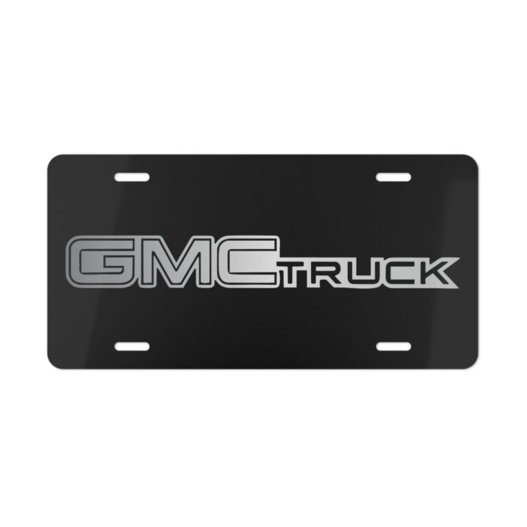 The GMC Truck plate features standard U.S. license plate dimensions with pre-drilled mounting holes for quick, hassle-free installation. It fits all standard license plate frames and mounts with ease.