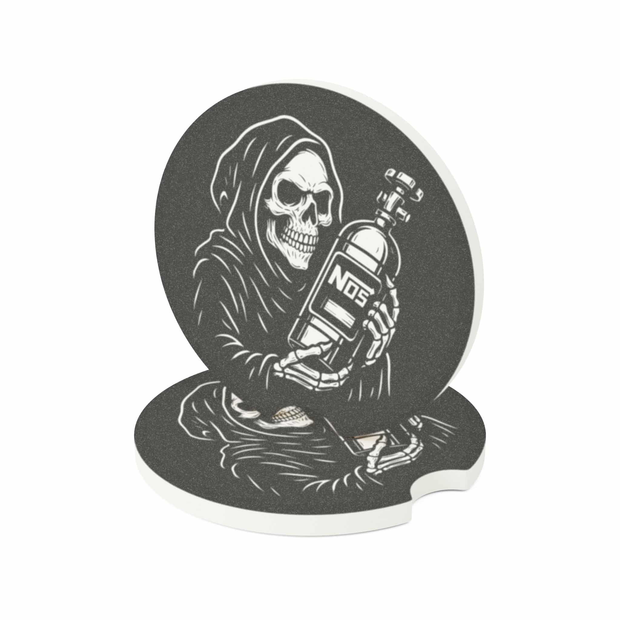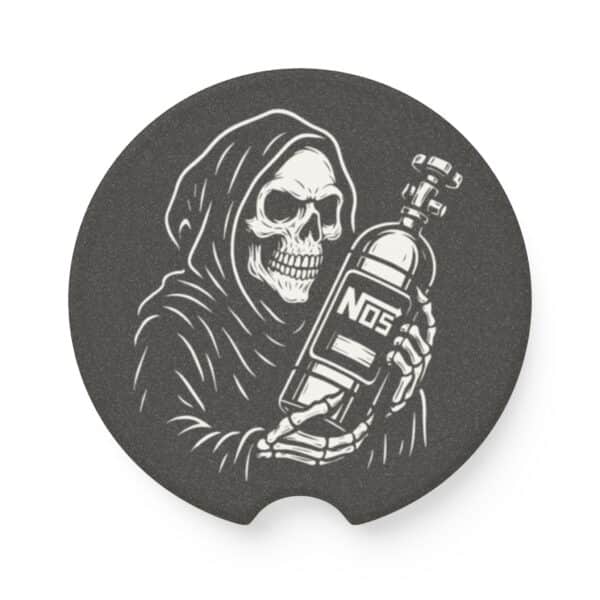 Bring dark energy and high-octane performance to your interior with the Grim Reaper NOS Bottle Soapstone Car Coaster — where death meets horsepower. 💀💨