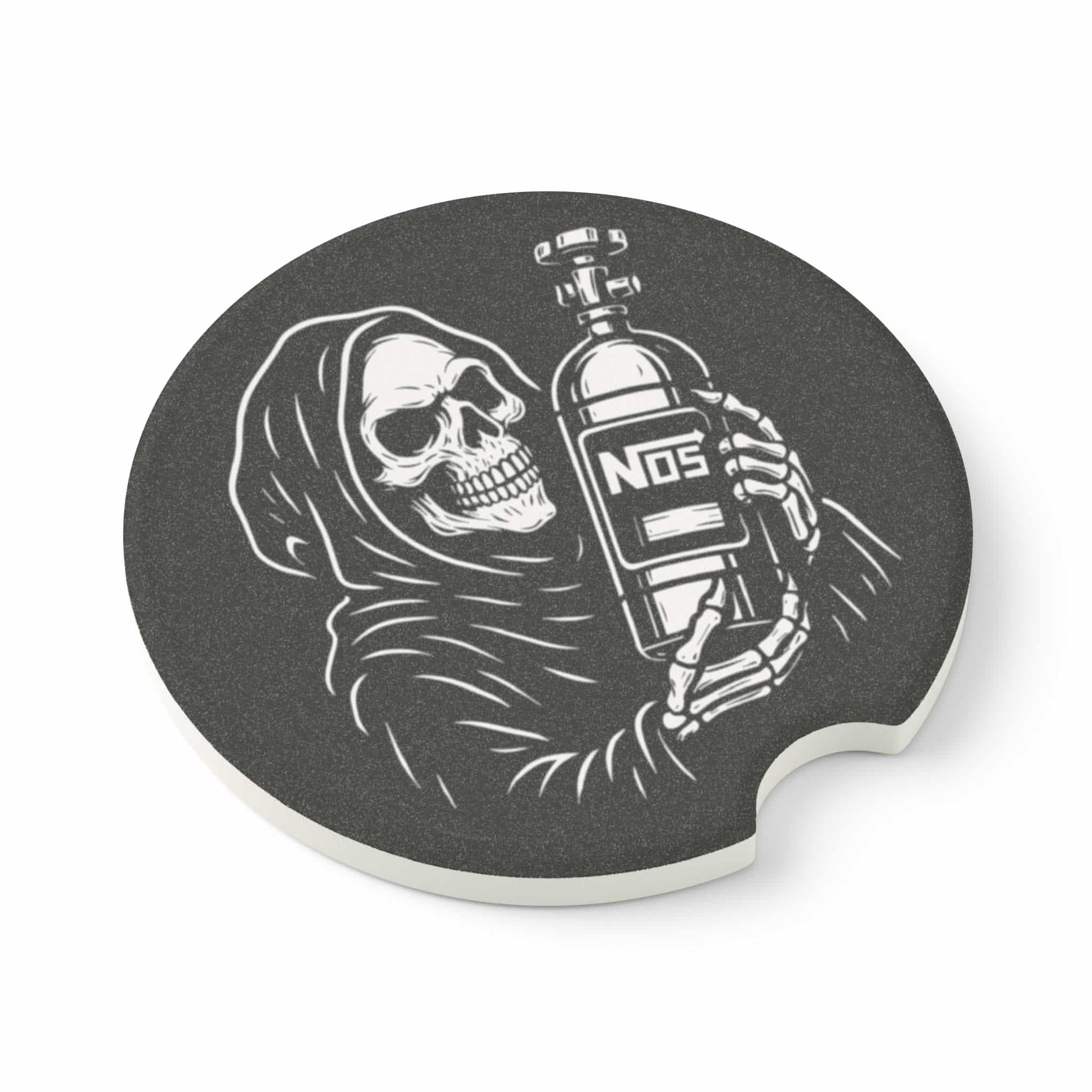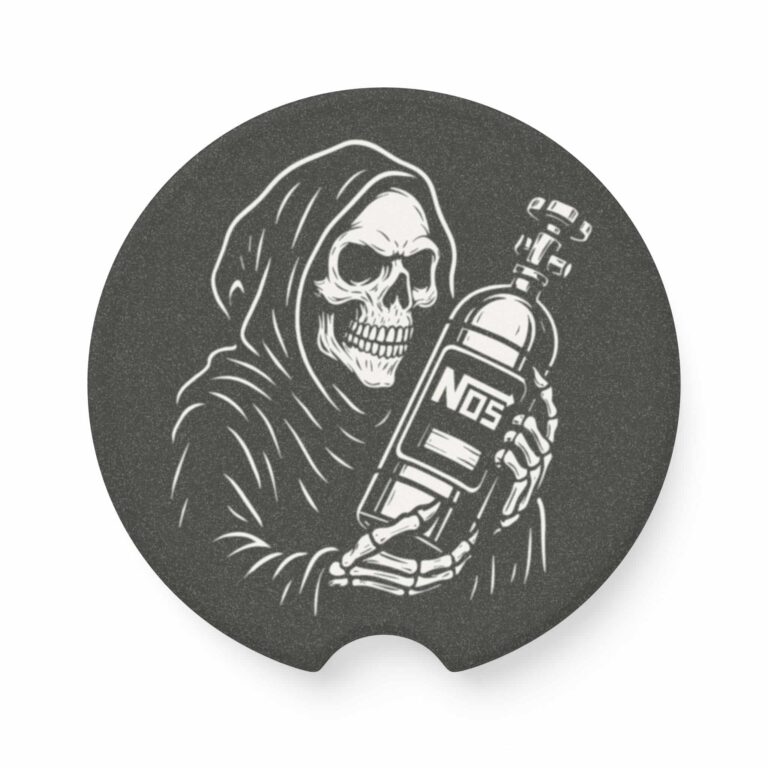 Unleash deathly speed with the Grim Reaper NOS Bottle Soapstone Car Coaster. Featuring a wicked Grim Reaper clutching a nitrous bottle, this coaster captures the raw power, thrill, and dark style of street racing culture. It’s the ultimate interior accent for adrenaline junkies and gearheads who live life wide open.