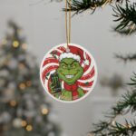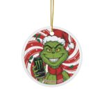 Made from premium ceramic, this ornament features a glossy finish and double-sided full-color print for vibrant detail that stands out on any tree. The included gold hanging cord makes it easy to display, while the durable design ensures it’ll last for many Christmas seasons. Whether you’re gifting it or adding it to your own holiday collection, this Grinch Monster Energy ornament is sure to spark smiles and laughs.