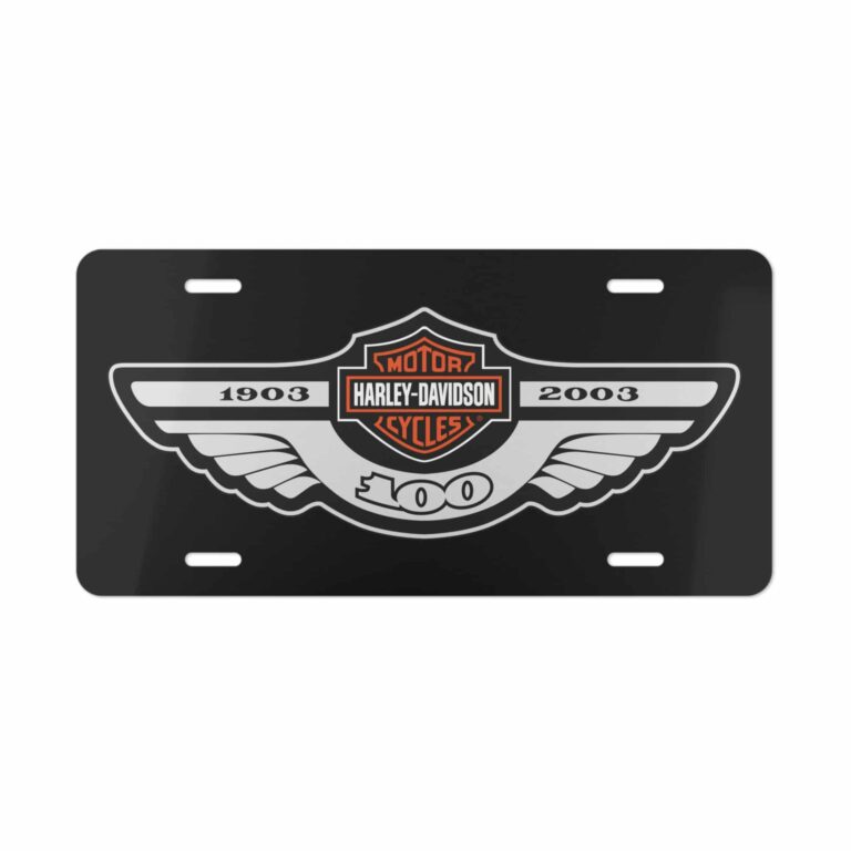 Celebrate a full century of legendary American motorcycle history with this Harley-Davidson 100 Years License Plate. Featuring the iconic 100th Anniversary emblem printed in high-resolution on a premium aluminum plate, this design brings that rare, collectible Harley style anywhere you mount it — trucks, bikes, garages, shop walls, man-caves, or trailers. It’s bold, classic, and instantly recognizable to any true Harley rider.