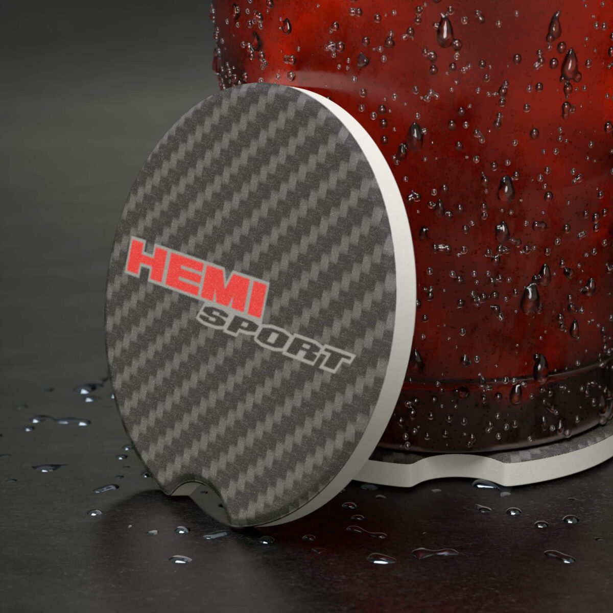 Hemi Sport Soapstone Car Coaster – Carbon Fiber Design Auto Accessory 🐏🔥