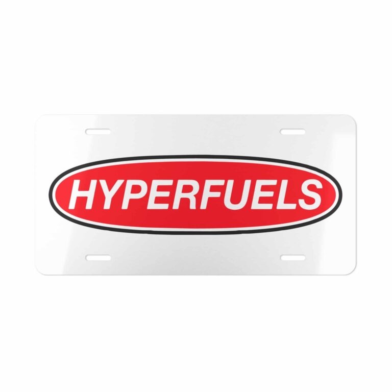 Show off your passion for real performance with this Hyperfuels License Plate. Featuring the bold Hyperfuels branding printed in high-resolution on a premium aluminum plate, this design gives your vehicle that clean, high-octane motorsports look. Whether you’re into boosted builds, race fuel, E85 setups, or track days, this plate instantly tells people your ride runs on serious power.