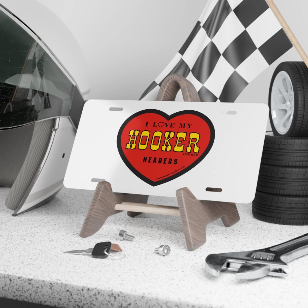 I Love My Hooker Headers License Plate — Classic Muscle Car Style Plate