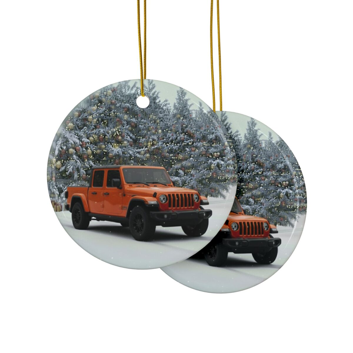 Bring rugged style and holiday spirit together with this Jeep Gladiator Ceramic Christmas Ornament. Featuring the bold and capable Gladiator in a festive winter scene, this ornament captures the perfect blend of off-road performance and Christmas cheer — ideal for Jeep fans and truck enthusiasts alike.