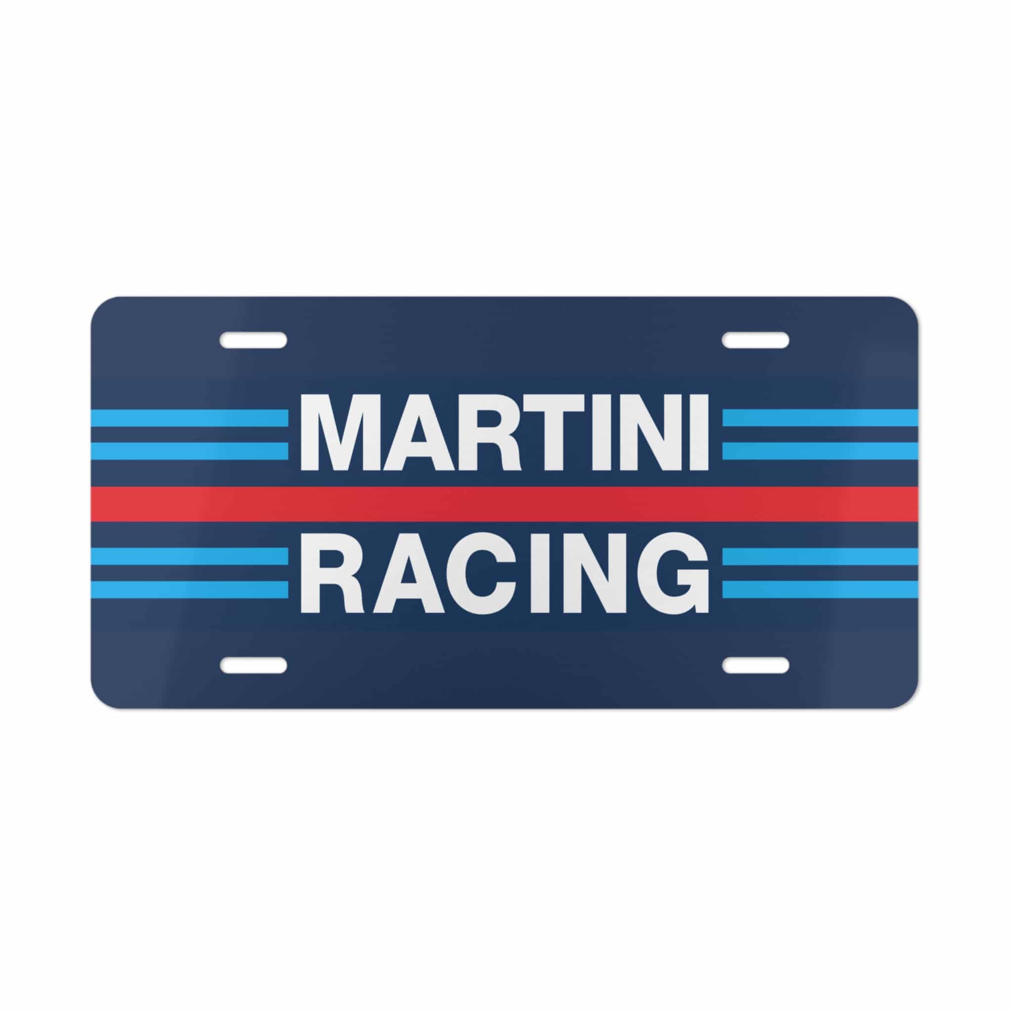 Bring classic motorsport heritage to your ride with this Martini Racing License Plate — a timeless tribute to one of the most iconic liveries in racing history. Featuring the legendary Martini Racing stripes in bold blue and red across a clean white background, this plate captures the spirit of speed, precision, and style that defined decades of championship racing.