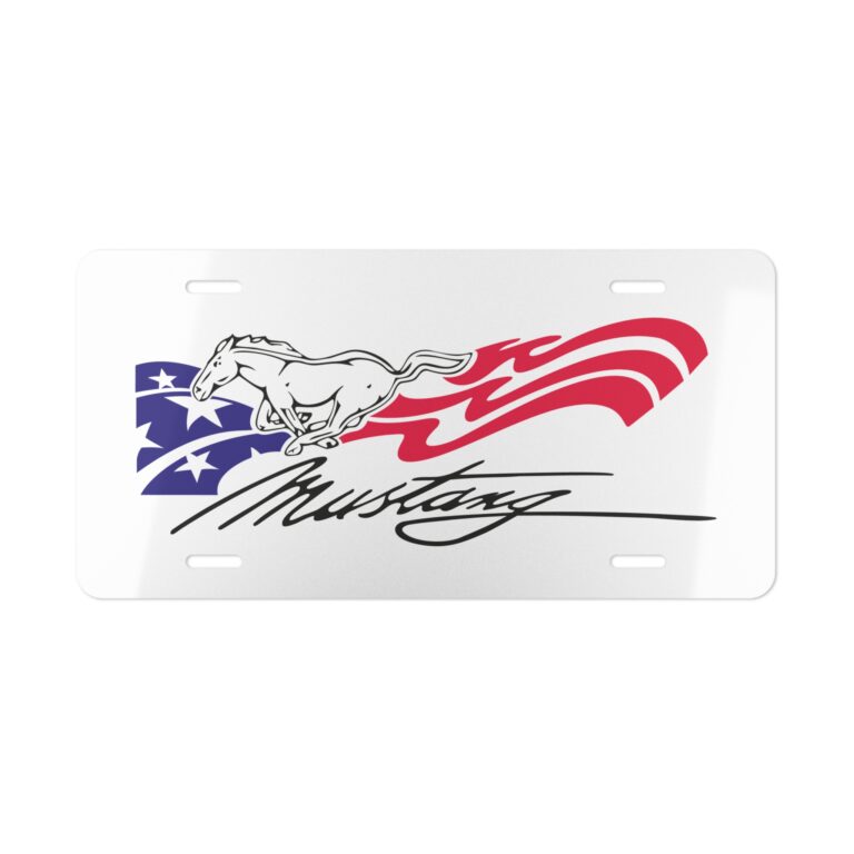 This Mustang American Flag License Plate features a crisp, high-resolution print of a Mustang graphic blended with the U.S. flag. The design pops with vibrant color and sharp detail on premium aluminum, giving your car, truck, garage, or display wall a clean, aggressive look.