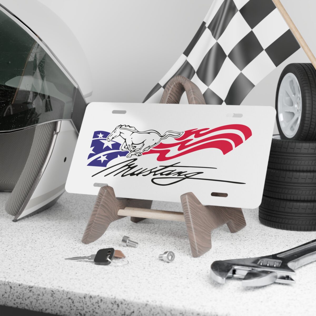 Mustang American Flag License Plate | Premium Aluminum Patriotic Pony Tag