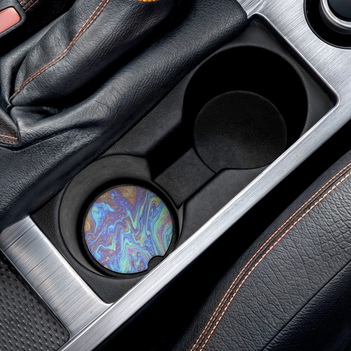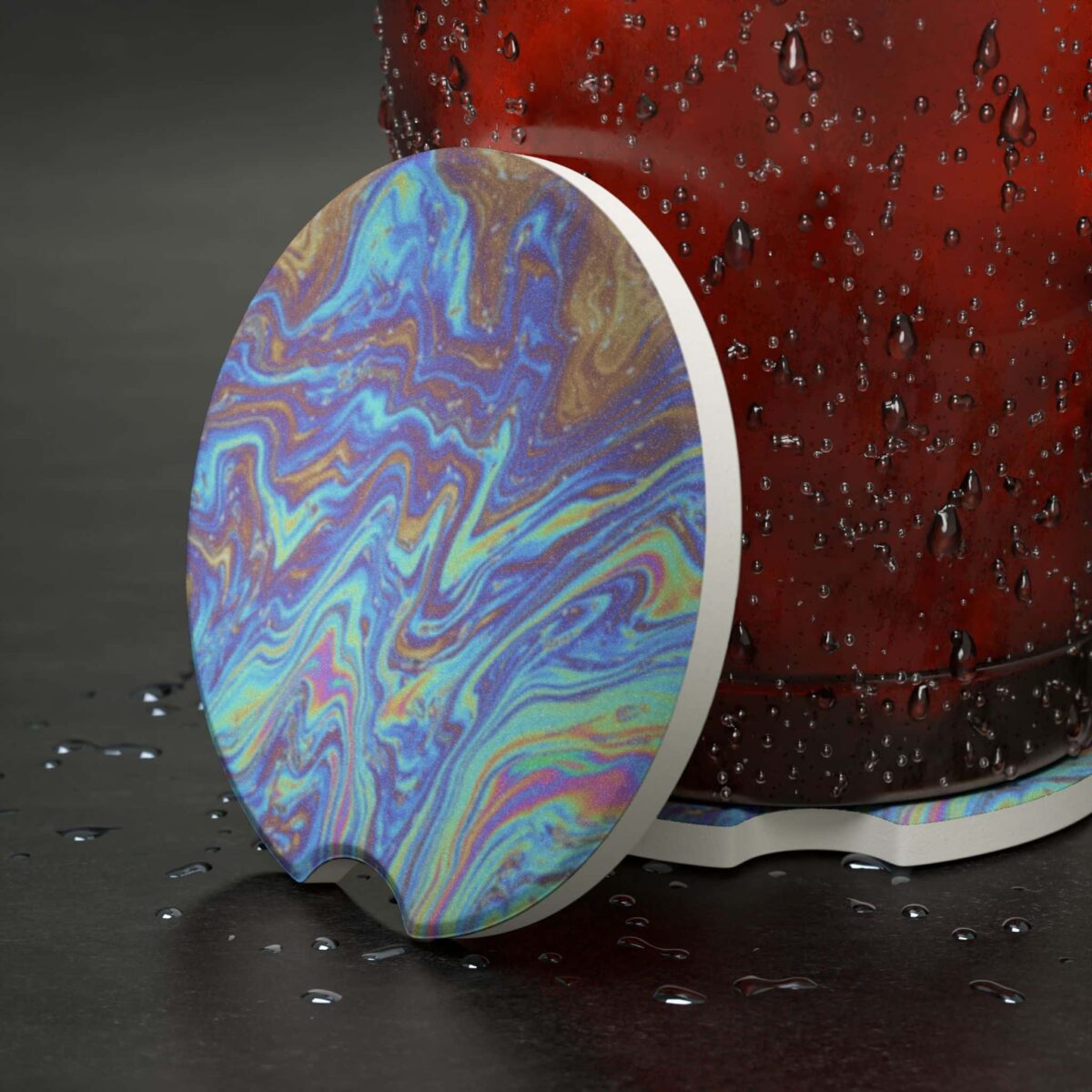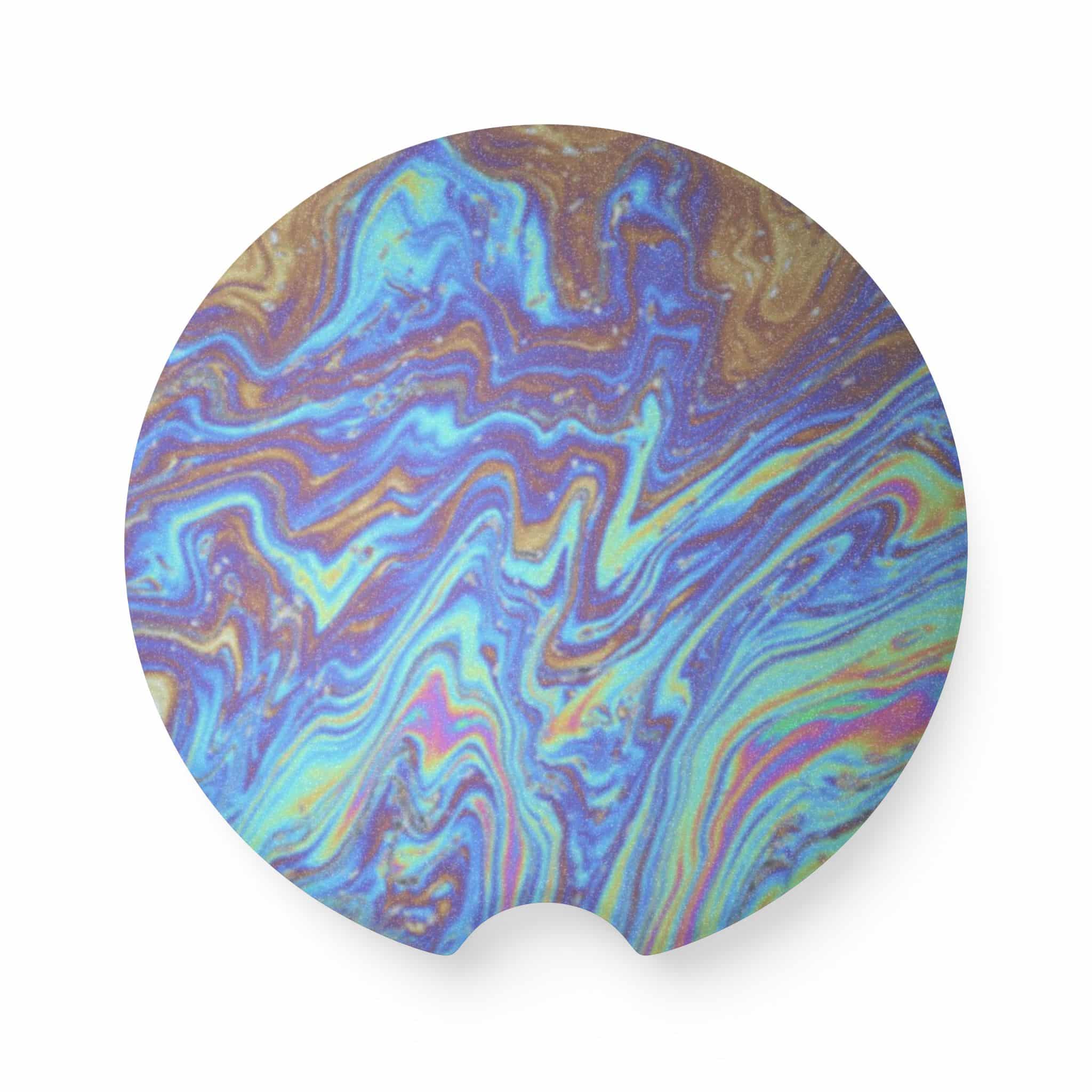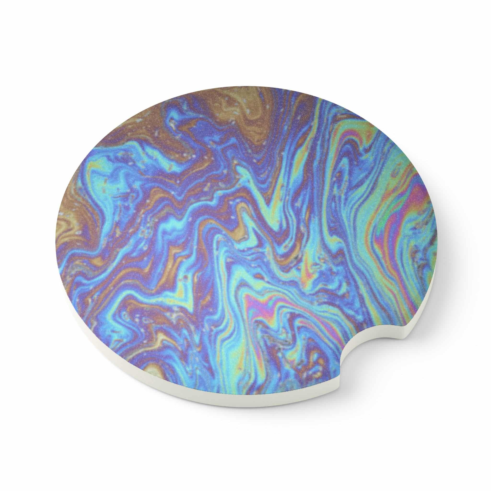 Oil Slick Soapstone Car Coaster – Iridescent Automotive Interior Accessory