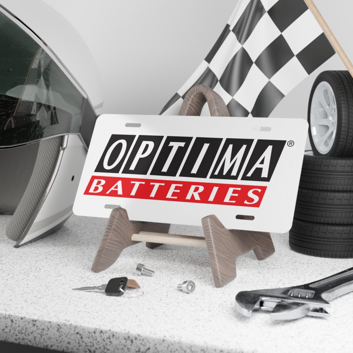 Show off your love for performance and reliability with the Optima Batteries License Plate. Whether you run the RedTop, YellowTop, or BlueTop, this plate brings that iconic Optima style to your ride, garage, or shop.