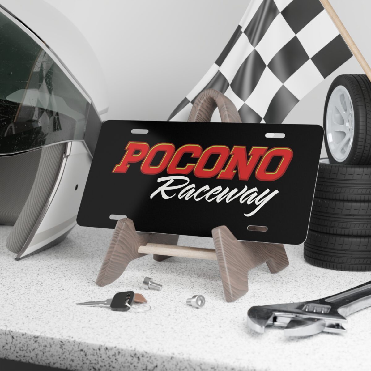 Celebrate one of NASCAR’s most unique and beloved tracks with this Pocono Raceway License Plate. Featuring a bold Pocono-inspired design, this plate pays tribute to the “Tricky Triangle” — the only superspeedway with three distinct turns, three different radii, and a driving challenge unlike anything else on the schedule. Whether you’re a long-time Pocono fan, a collector of track memorabilia, or someone who just loves the legendary Pennsylvania venue, this plate brings authentic race-day energy anywhere you display it.