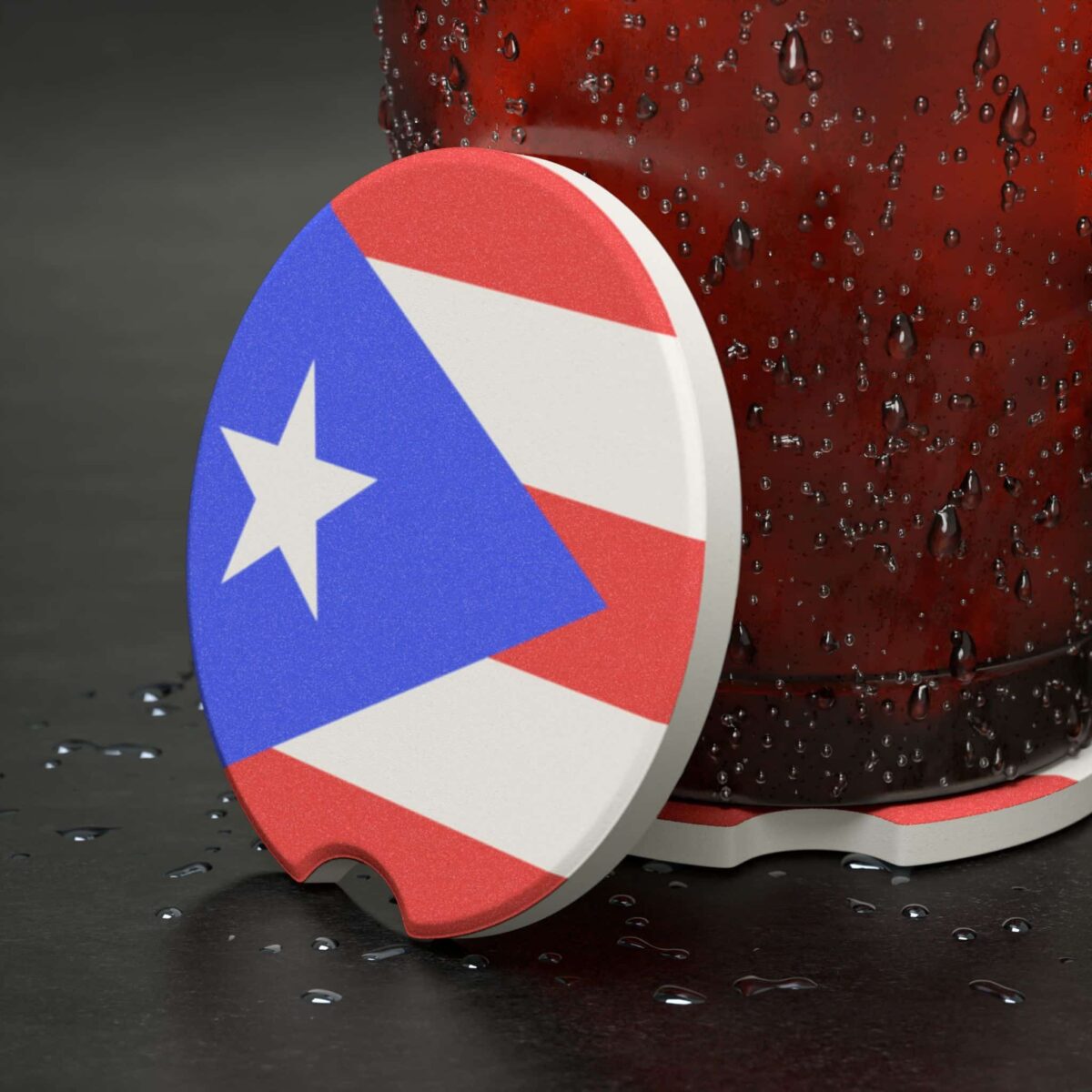 Show your island pride every time you get behind the wheel with the Puerto Rico Flag Soapstone Car Coaster. Crafted from natural soapstone with a bold flag design, this coaster combines heritage and functionality—keeping your cup holders clean while representing Puerto Rican culture in style.