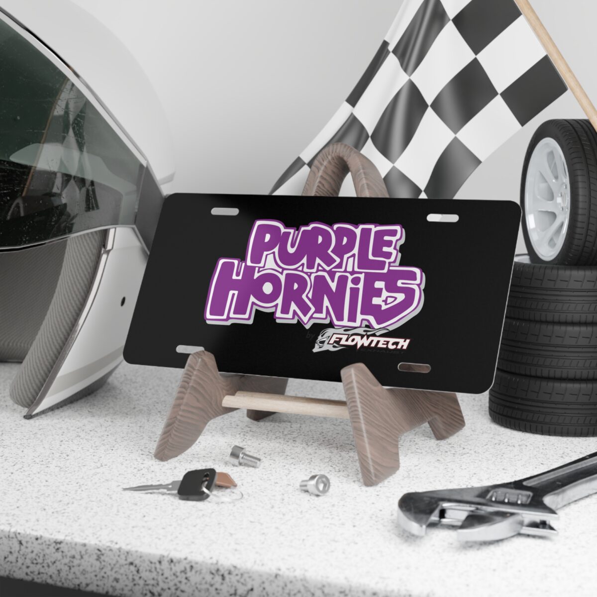 Turn up the nostalgia and the noise with this Purple Hornies by Flowtech License Plate. Featuring a bold, retro-inspired Purple Hornies graphic, this plate celebrates the legendary mufflers known for their unmistakable look, rowdy sound, and classic street-machine attitude. Whether you ran them in the old days or just love the throwback vibe, this plate brings that same loud-and-proud energy to your ride or garage.