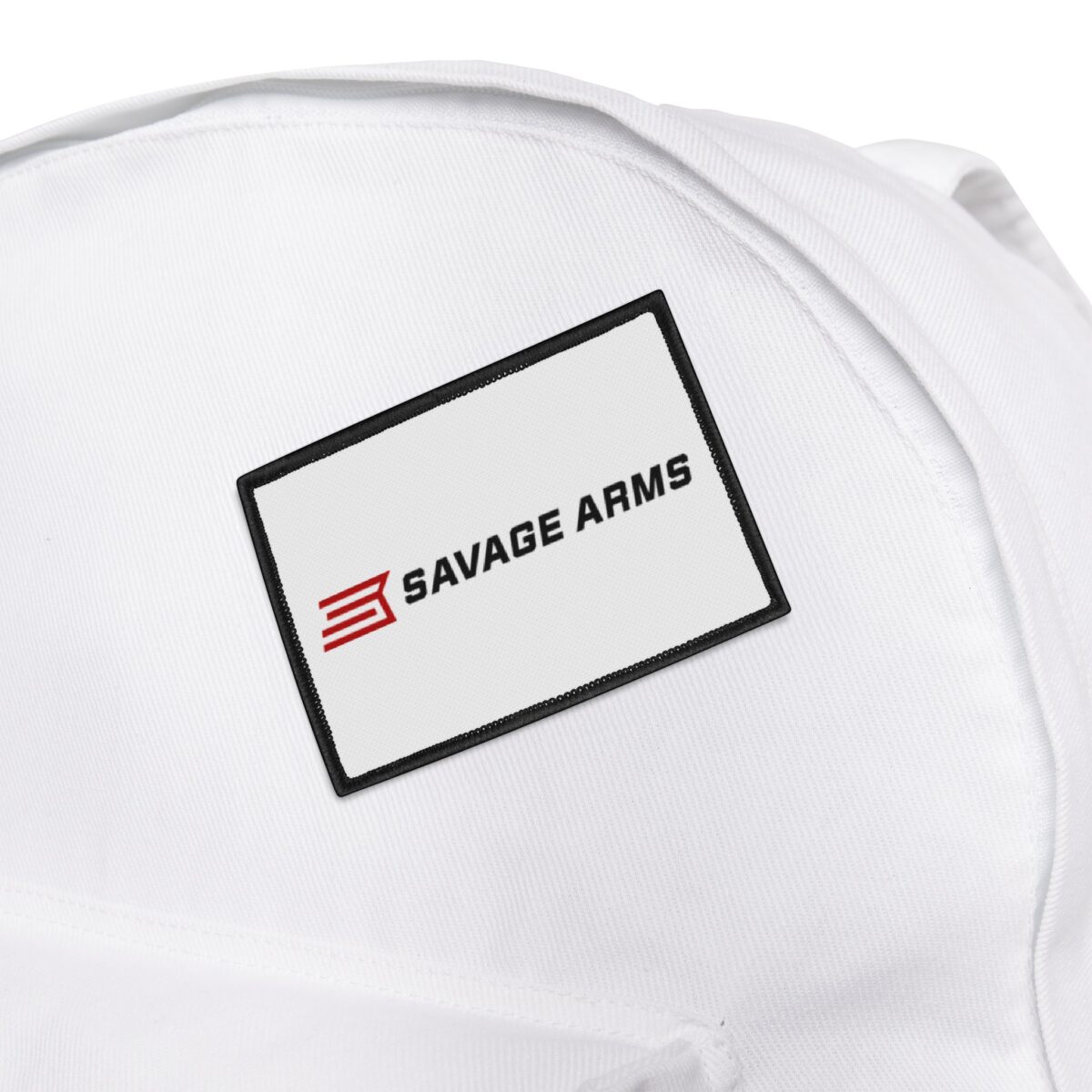 The Savage Arms iron-on patch includes a heat-activated backing for easy application to most fabrics. For jackets, vests, range bags, or heavy-use items, sewing the patch on is also recommended for maximum durability and long-term hold.