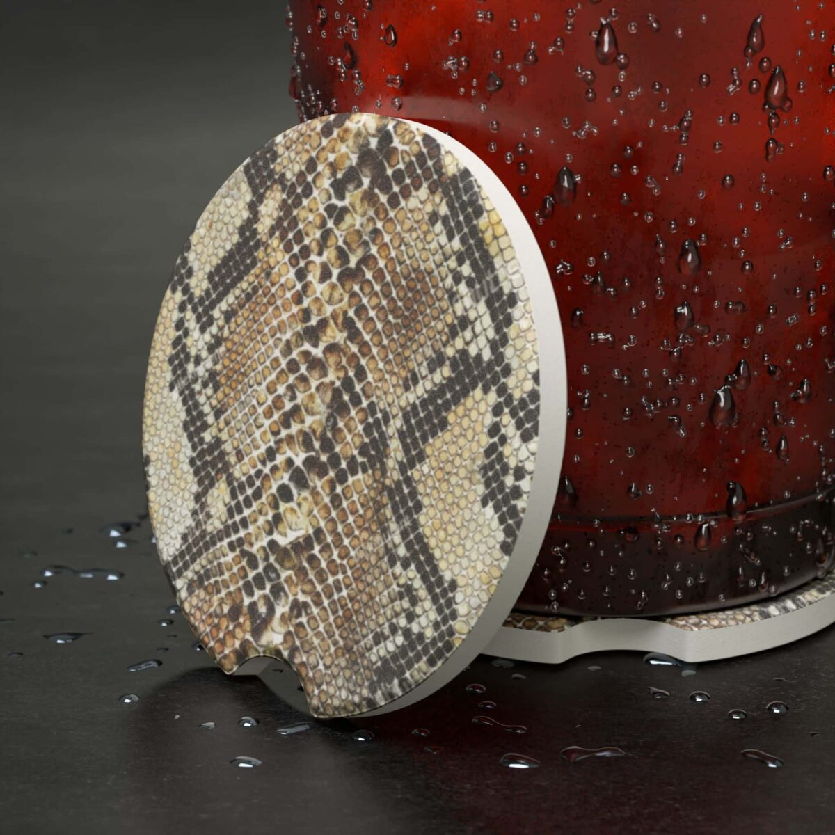 Bring a touch of wild luxury to your ride with the Snake Skin Soapstone Car Coaster. Designed with a realistic snake scale texture print, this coaster combines bold style with everyday practicality—perfect for car lovers who want something unique, edgy, and upscale inside their vehicle.