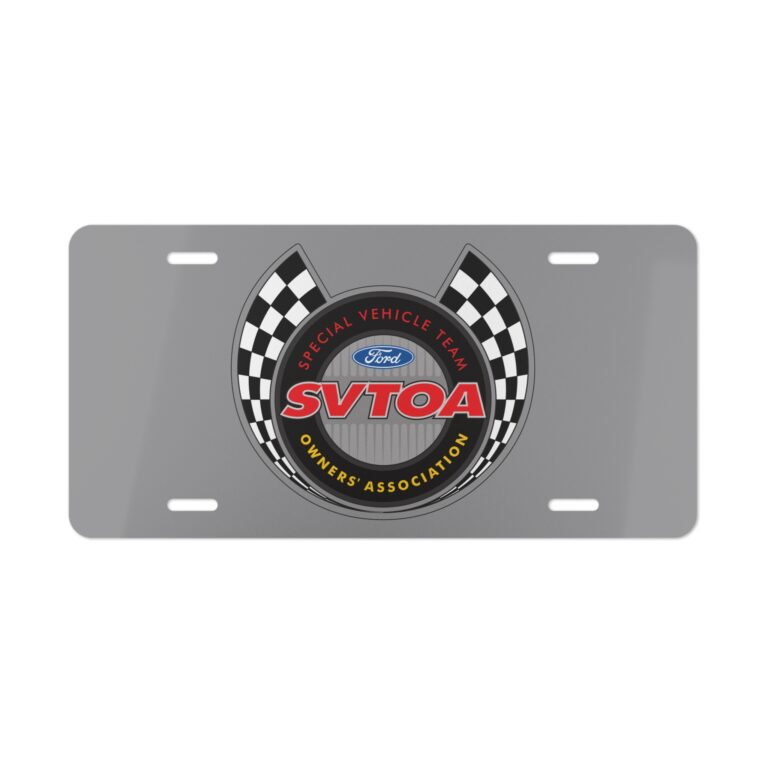 Show your pride in Ford’s high-performance legacy with this SVTOA SVT Owners Association License Plate. Featuring bold SVTOA branding, this plate celebrates the community behind the most iconic SVT vehicles ever built — from Cobra and Lightning to Raptor, Shelby GT500, Contour SVT, and beyond. Whether you’re an official member, an SVT owner, or simply a fan of Ford’s Special Vehicle Team heritage, this plate brings that unmistakable performance attitude anywhere it’s displayed.