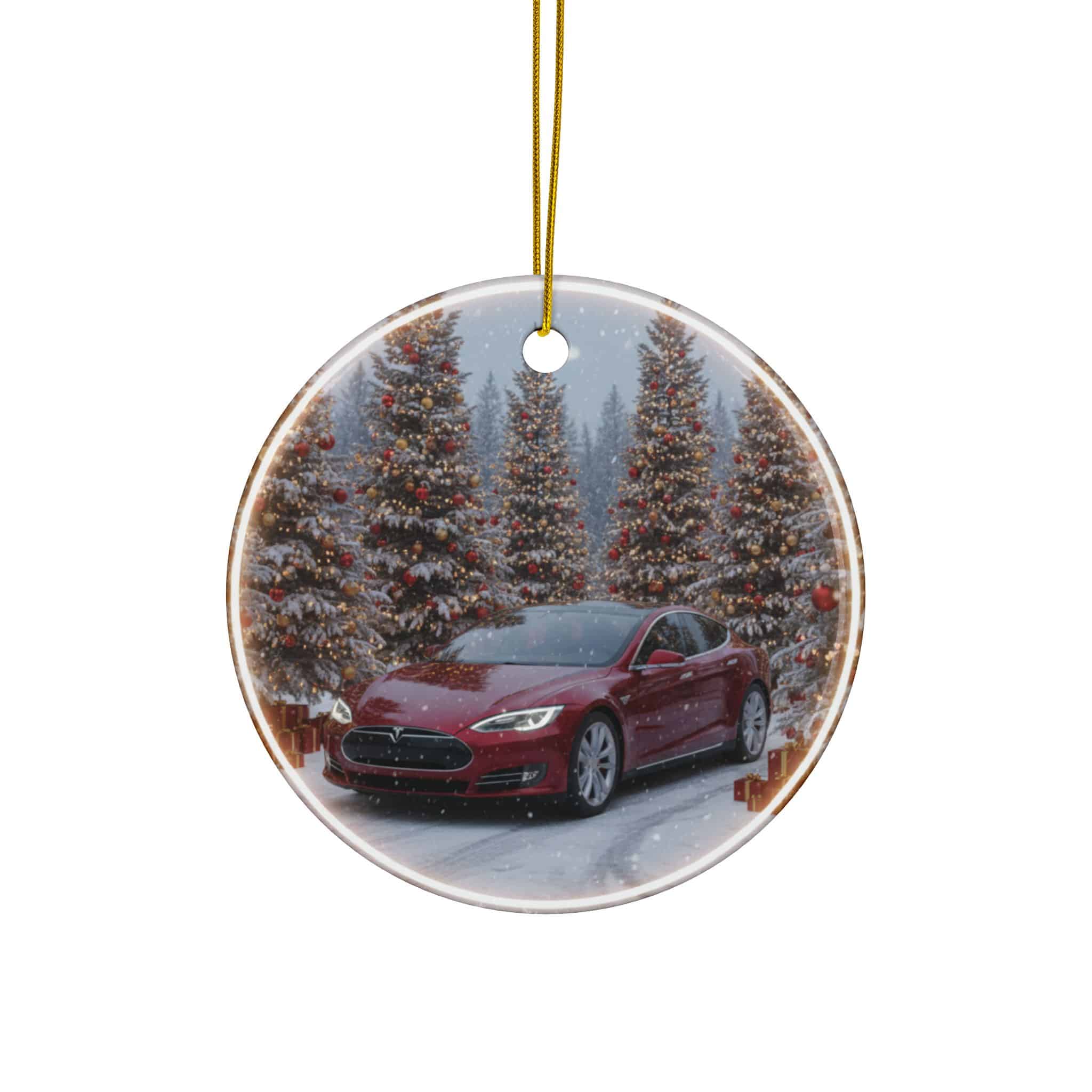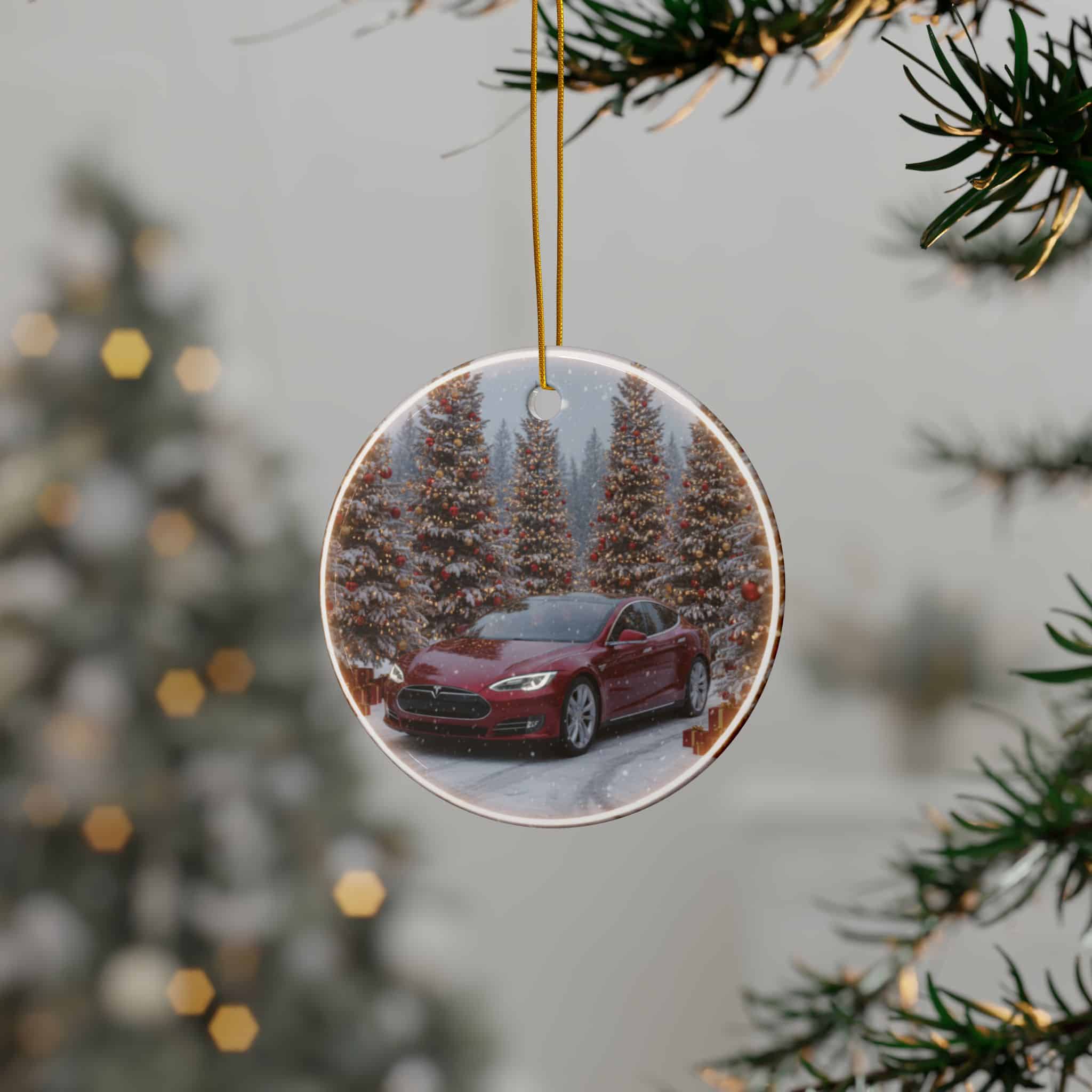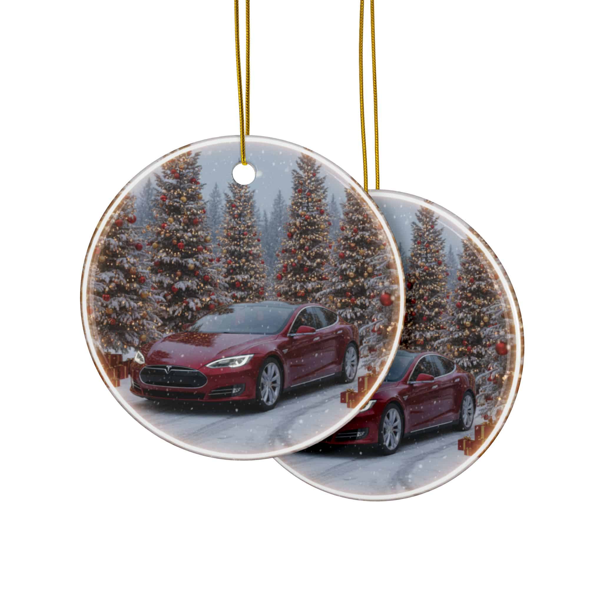 Celebrate the future of performance and innovation this holiday season with the Tesla Model S Ceramic Christmas Ornament. Featuring the sleek, all-electric Model S set in a festive winter scene, this ornament combines luxury, speed, and sustainability in one beautifully designed keepsake — perfect for any Tesla fan or EV enthusiast.