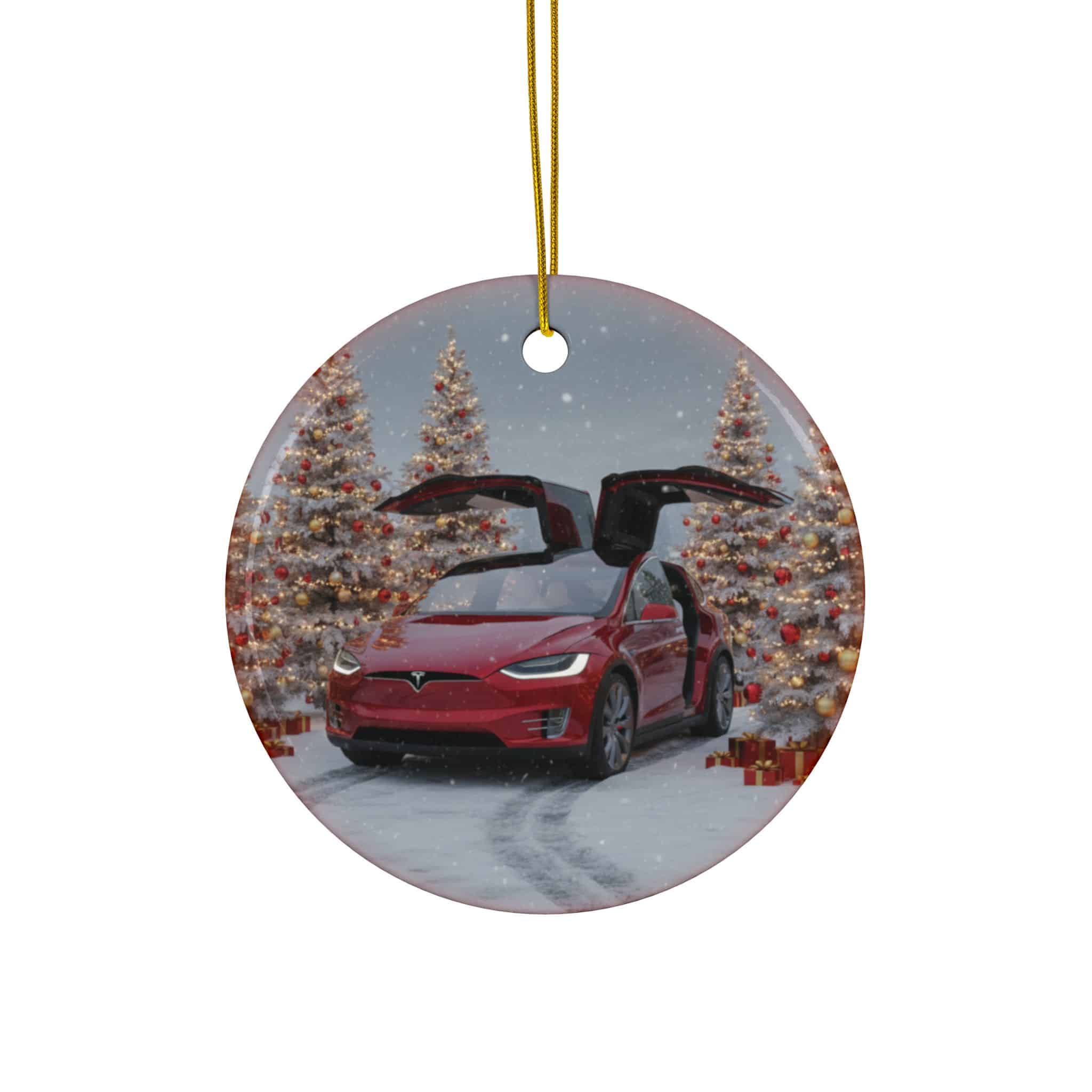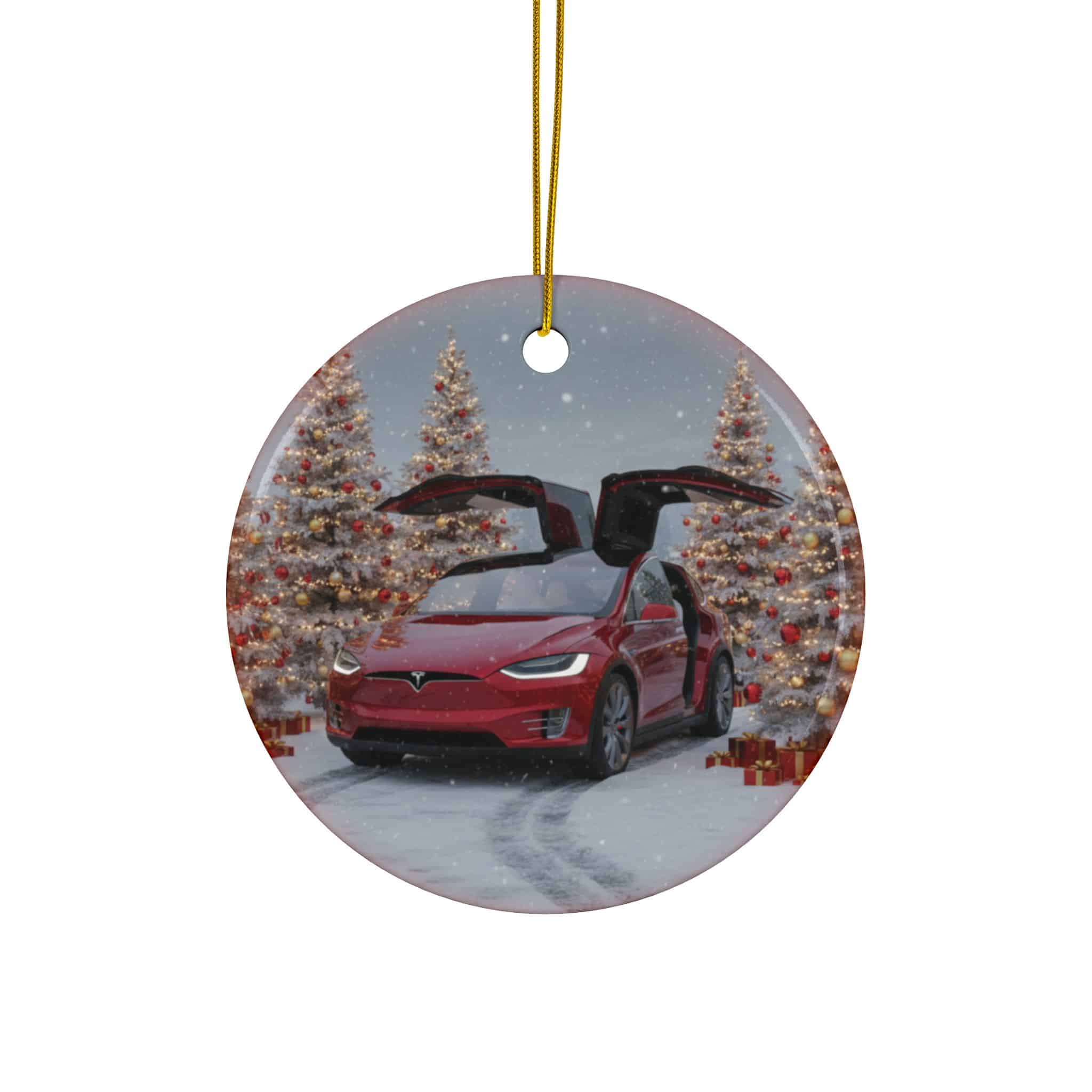 Celebrate innovation, luxury, and all-electric performance this holiday season with the Tesla Model X Ceramic Christmas Ornament. Featuring Tesla’s distinctive SUV in a festive winter setting, this ornament captures the Model X’s bold design — from its signature falcon-wing doors to its sleek electric styling — wrapped in holiday charm.