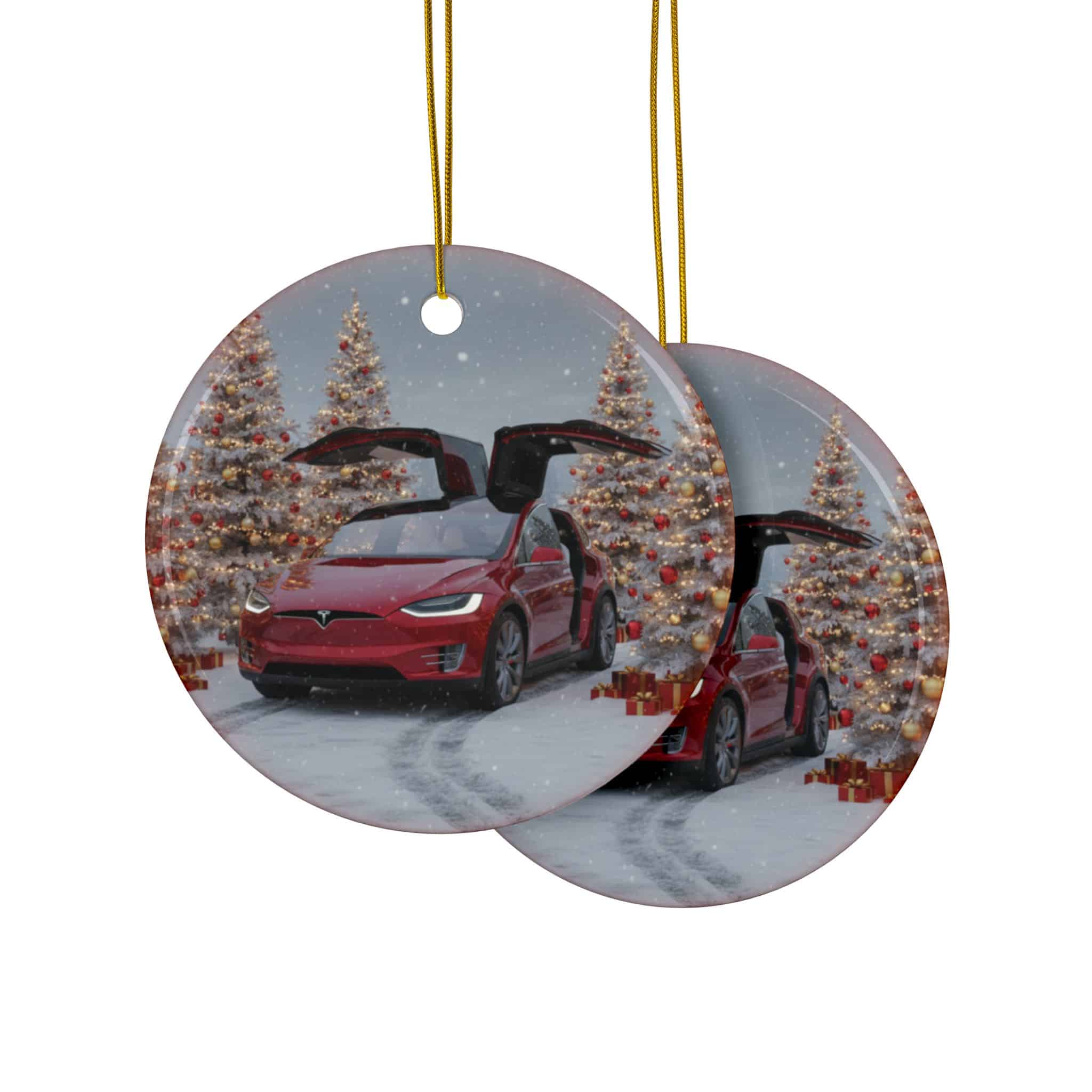 Tesla Model X Ceramic Christmas Ornament