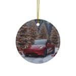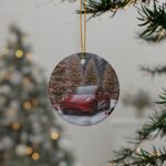 Crafted from premium ceramic, this round ornament features a double-sided, full-color print with sharp detail and a glossy finish that shines beautifully under your Christmas lights. It includes a gold hanging cord for effortless display on your tree, in your garage, or even from your rearview mirror during the season.