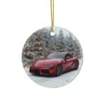 Add JDM performance and holiday style to your décor with this Toyota GR Supra Ceramic Christmas Ornament. Featuring the modern GR Supra in a festive winter scene, this ornament combines sleek Japanese design with Christmas cheer — perfect for car enthusiasts, collectors, and Supra fans alike.